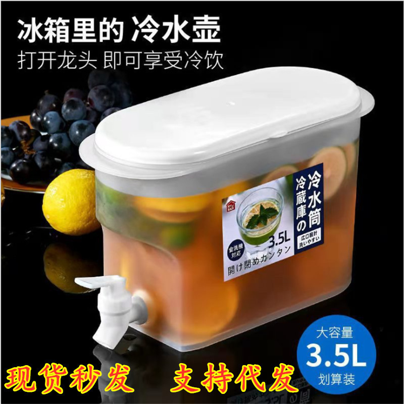 冷蔵庫冷水ポット 蛇口付き冷水バケツ 3.5L 大容量 レモン入り冷製ボトル 家庭用冷水 冷水入れ