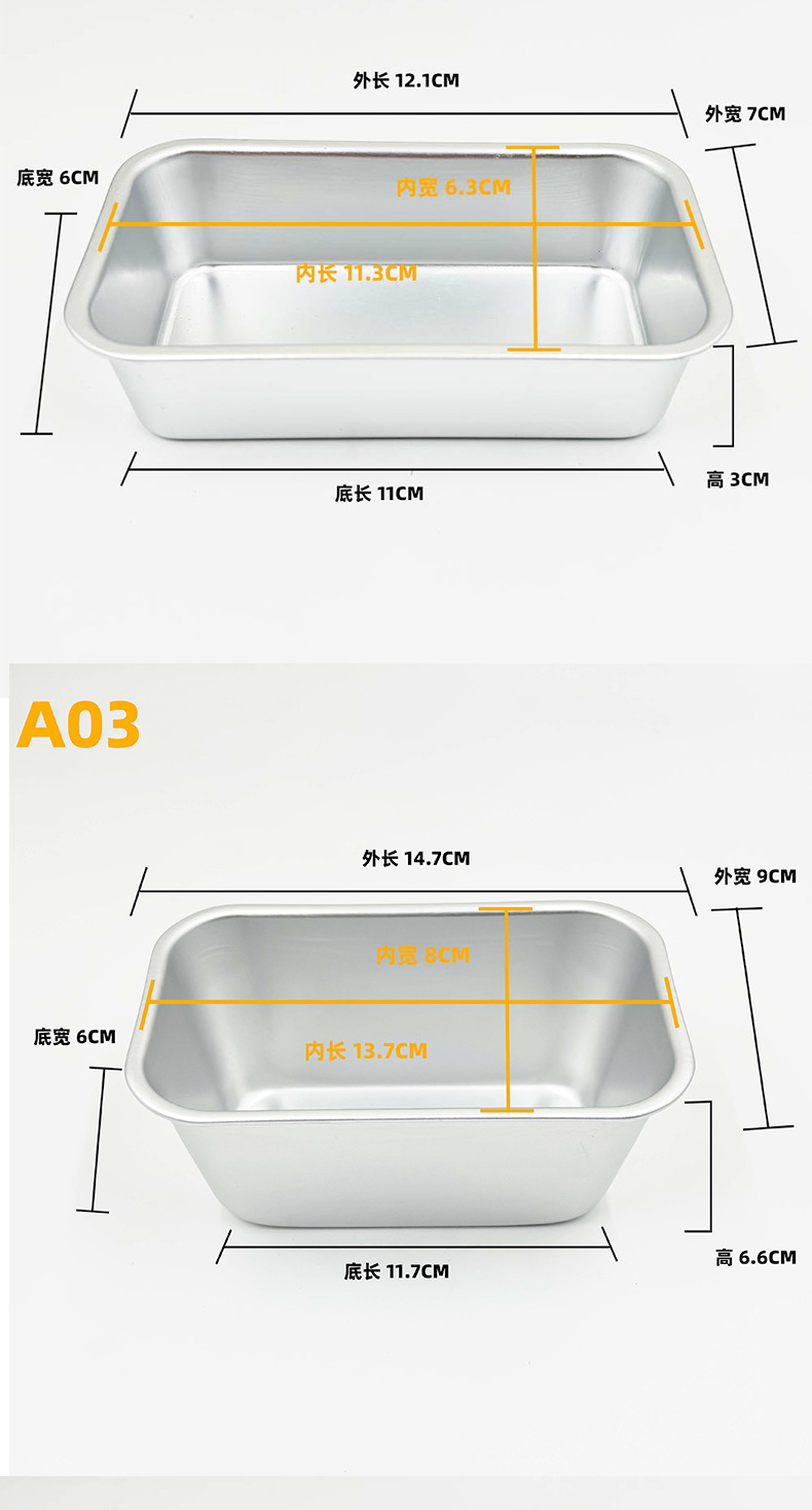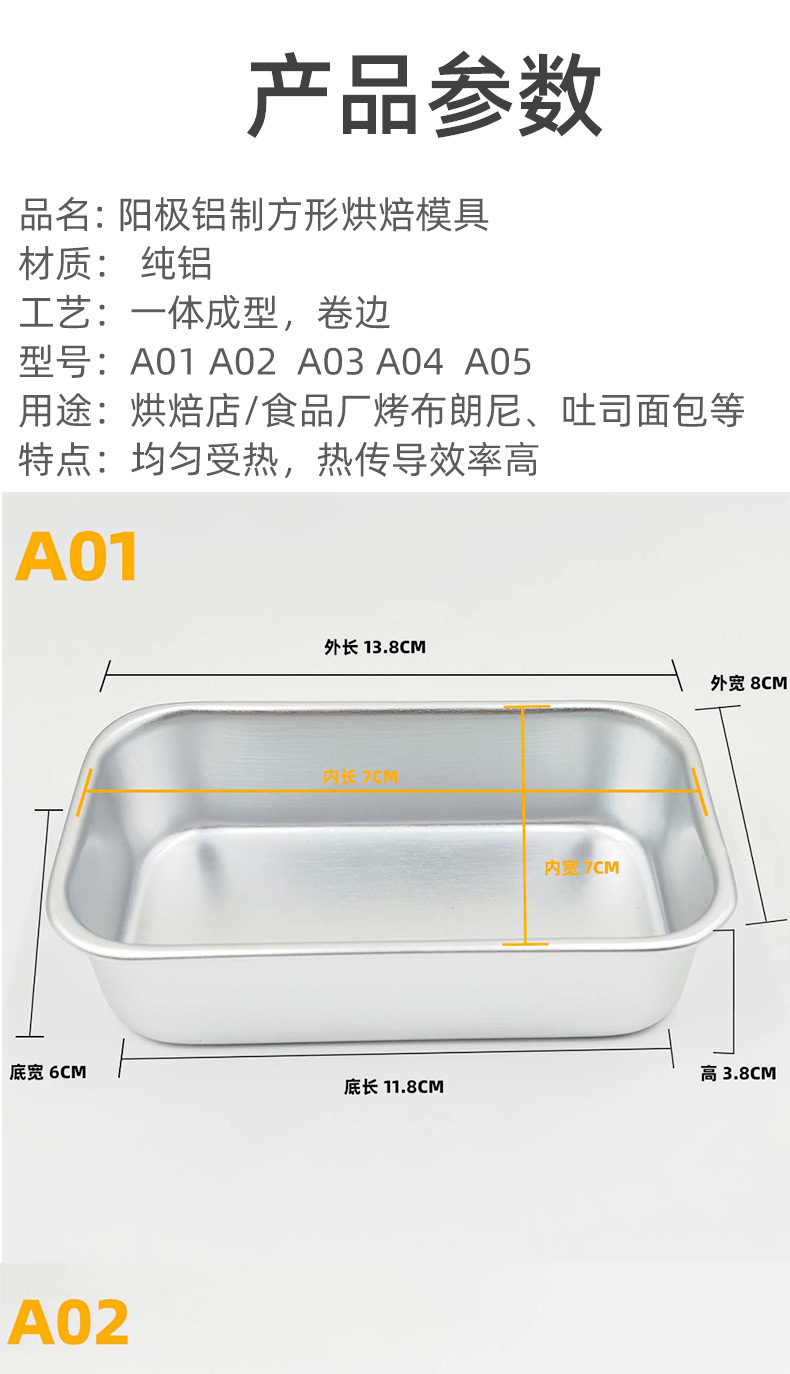 A01-A06长方阳极雪芳蛋糕模具烘焙布朗尼吐司面包模布丁果冻模