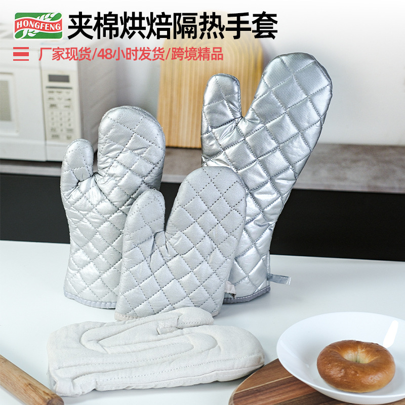 銀を塗ってオーブンの手袋のキャンバスの断熱の手袋を焼きます。