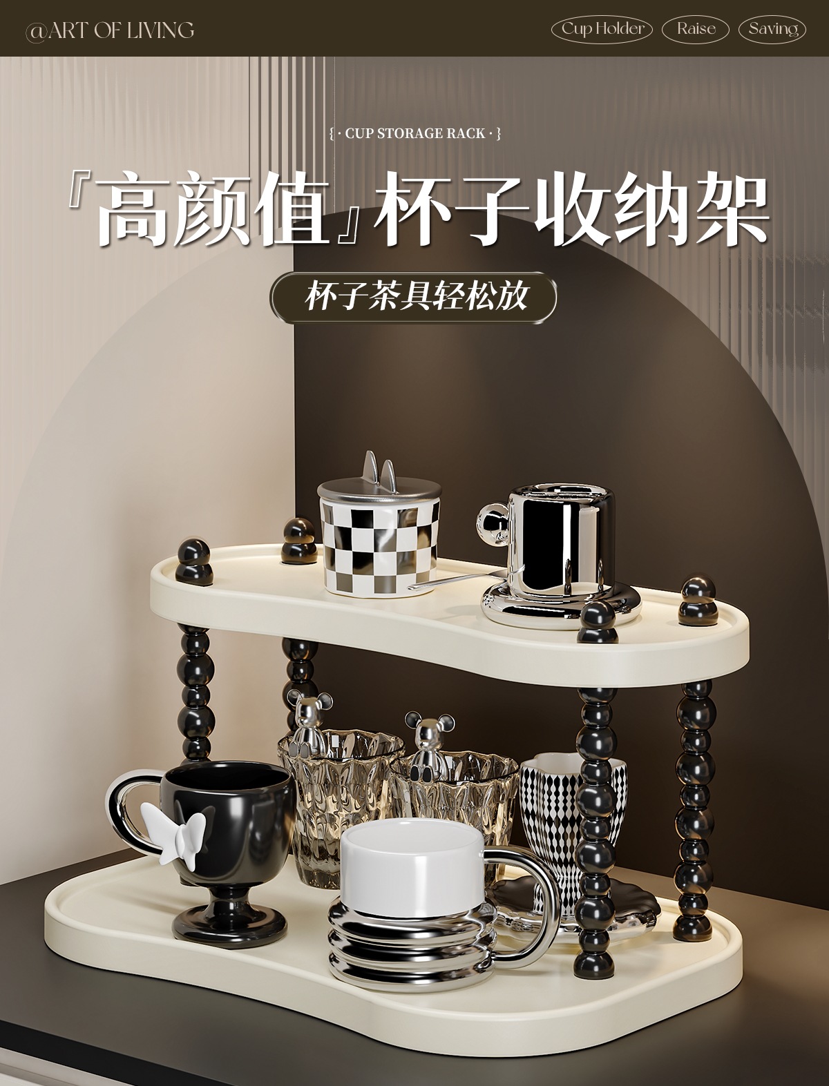 カップホルダーカップホルダーテーブル高级感カップカップカップカップコーヒーカップ収纳ラック多层オフィスデスクトップシェルフ