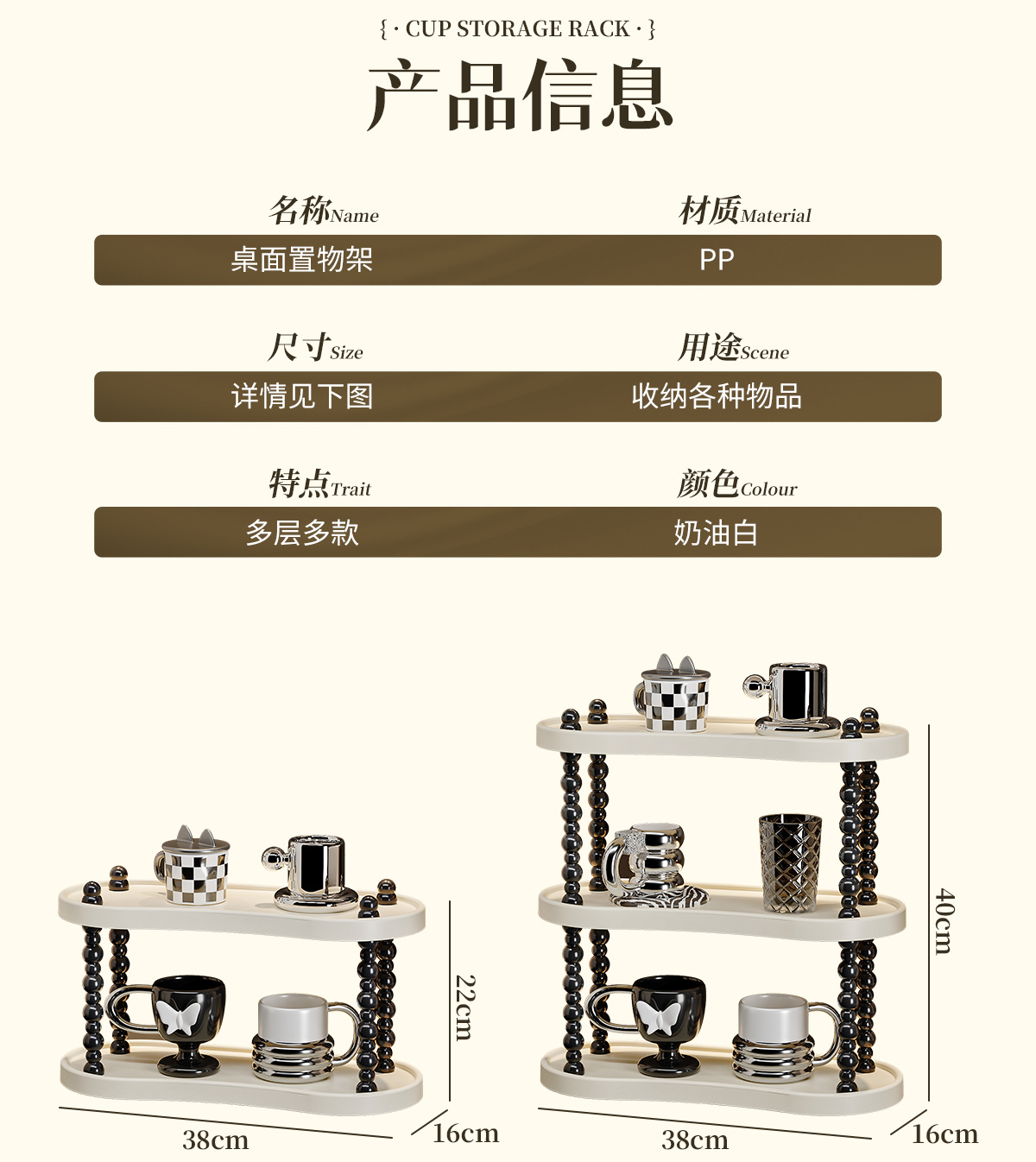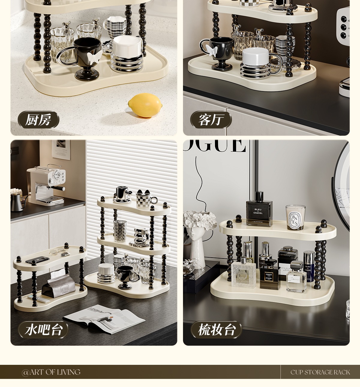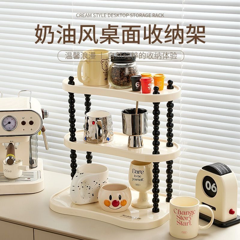 クリーム風多層リビング収納棚デスクトップマグカップ収納棚アロマ香水化粧品整理棚
