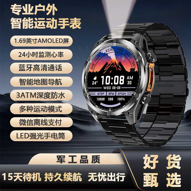 户外跑步运动防水智能手表GPS轨迹海拔气压指南针多功能蓝牙电话