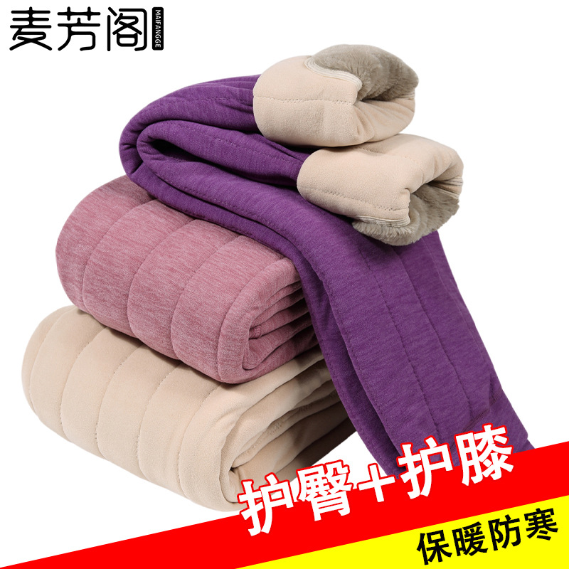 中老年妈妈裤子女冬季加绒加厚保暖裤德绒高腰老太太防寒护膝棉裤