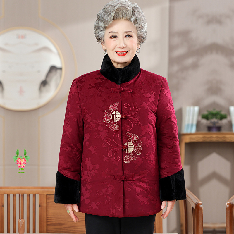 奶奶冬装棉衣妈妈加绒加厚棉袄老太太唐装外套老年人绣花喜庆棉袄