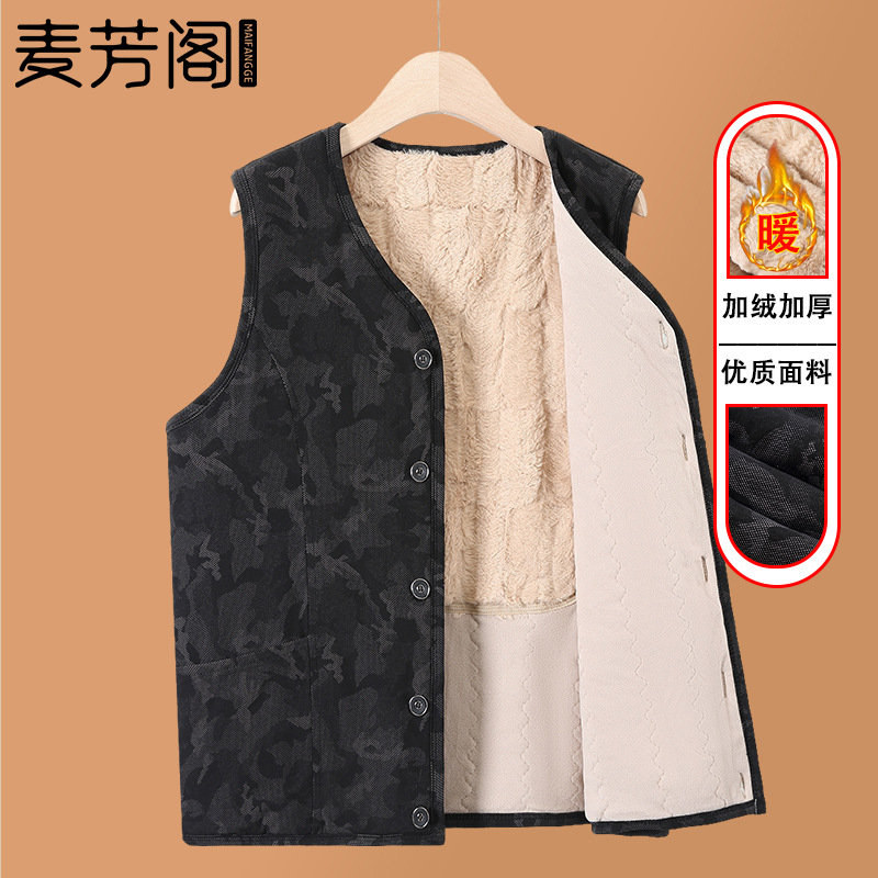 中高年男性秋冬馬甲の新型ベルベットは保温綿ベストを厚くして60歳の高齢者の肩の父親を厚くした