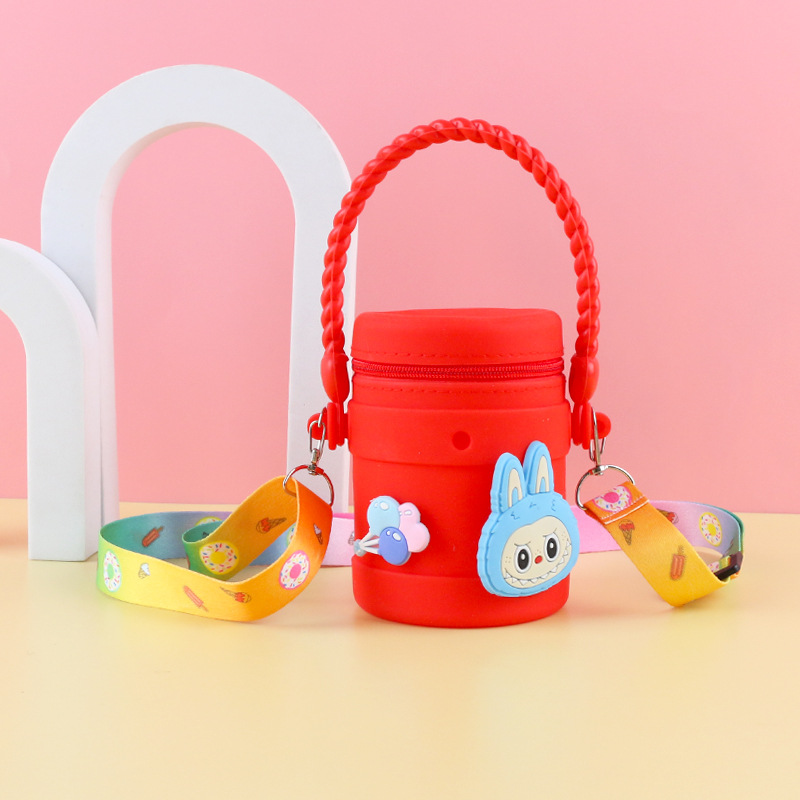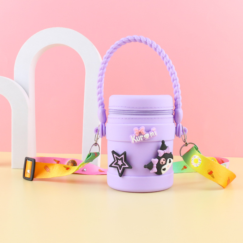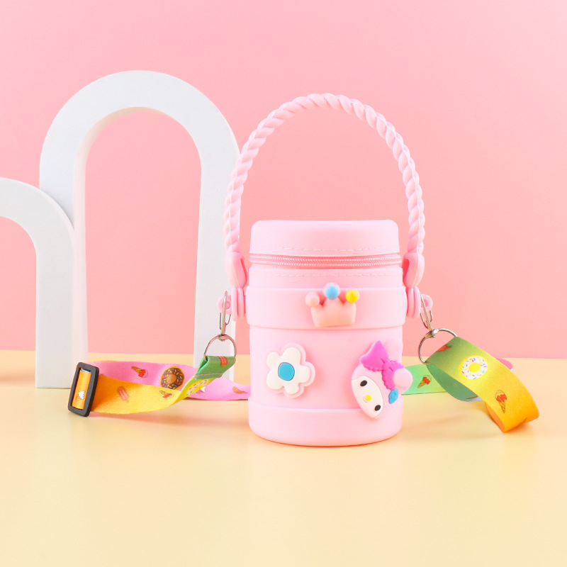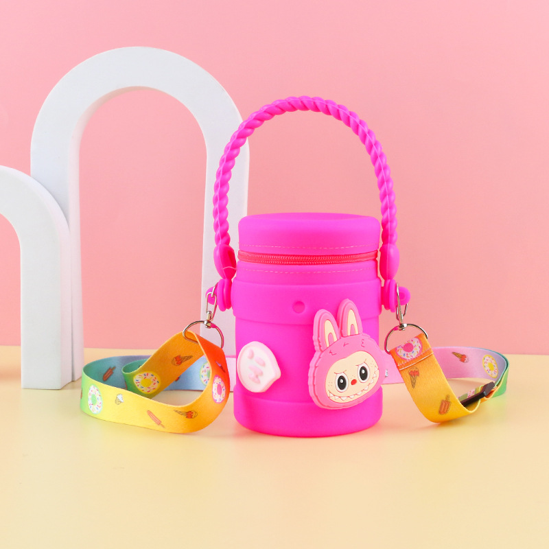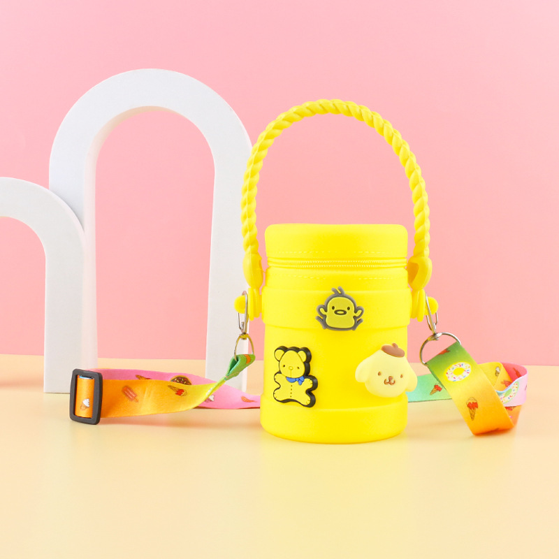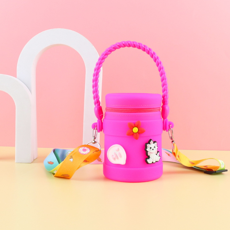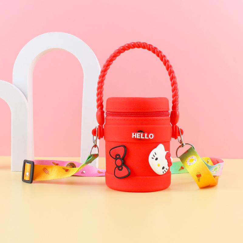 在庫あり ケイティ猫の水筒型シリコンハンドバッグ 可愛い漫画風シリコン小銭入れ 学生旅行用バケツ型バッグ