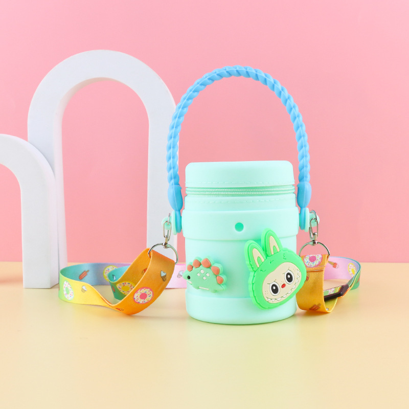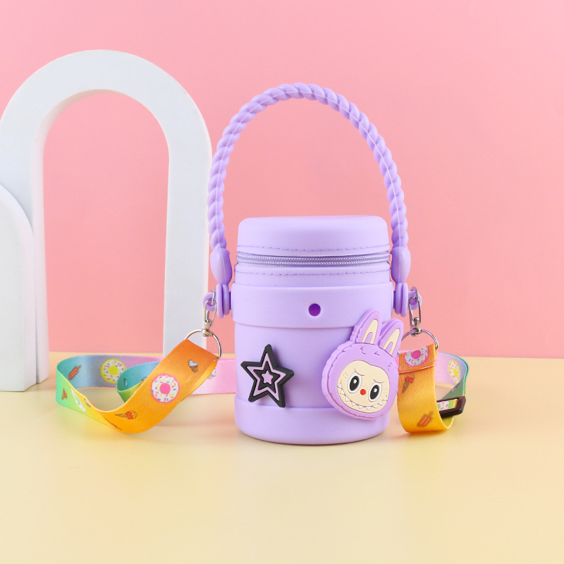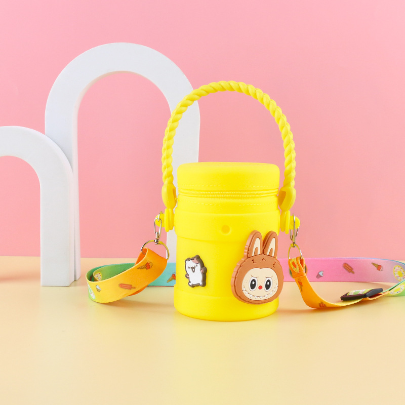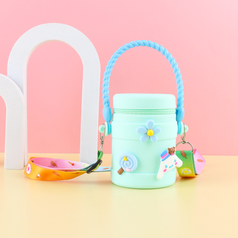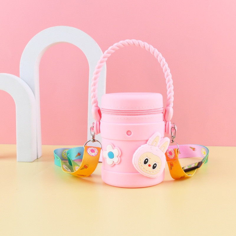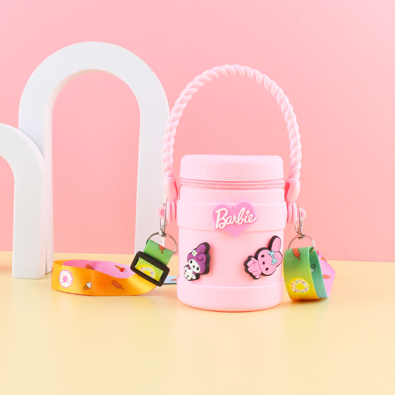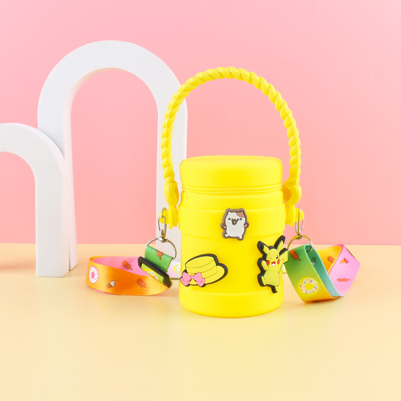 在庫あり ケイティ猫の水筒型シリコンハンドバッグ 可愛い漫画風シリコン小銭入れ 学生旅行用バケツ型バッグ