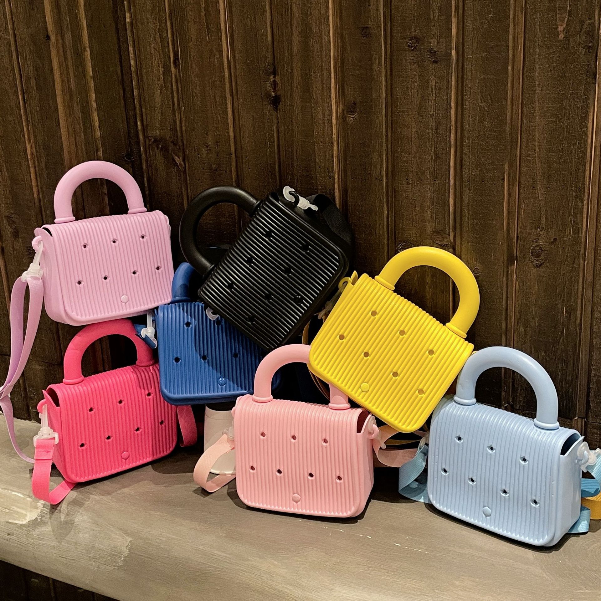 DIYシリコンの穴のカバンのビーチのハンドバッグのジッパーの肩の斜めのショルダーの漫画の子供の女性のカバンの携帯電話の収納のカバン