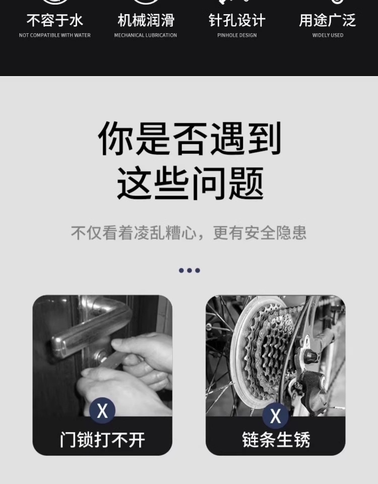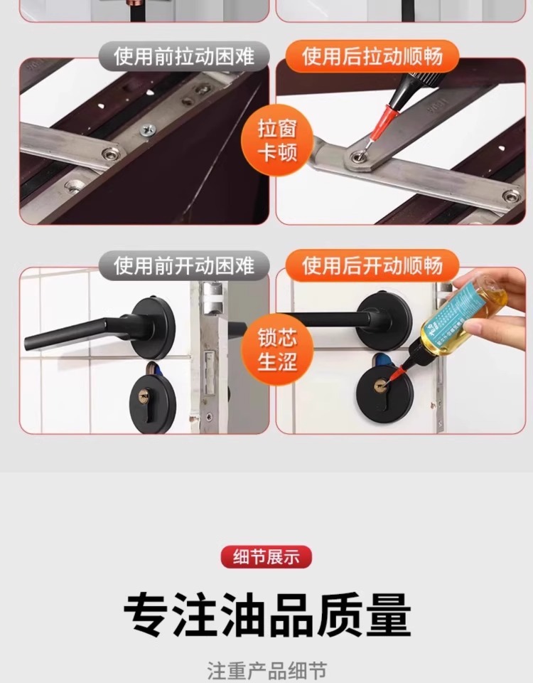 機械潤滑剤、ミシン油、家庭用ドアシャフト、ドアの音、ドアと窓の異音、ドアロックシリンダー、ドア小ボトルヒンジ潤滑剤