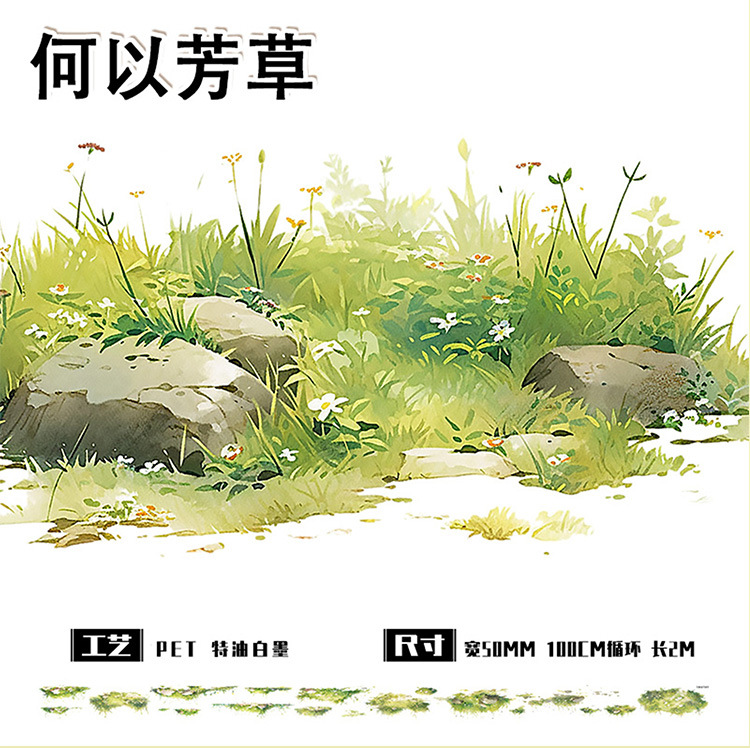 三渡文創新品手帳テープpet四季芝生シリーズ背景diy携帯ケースタイル造景素材