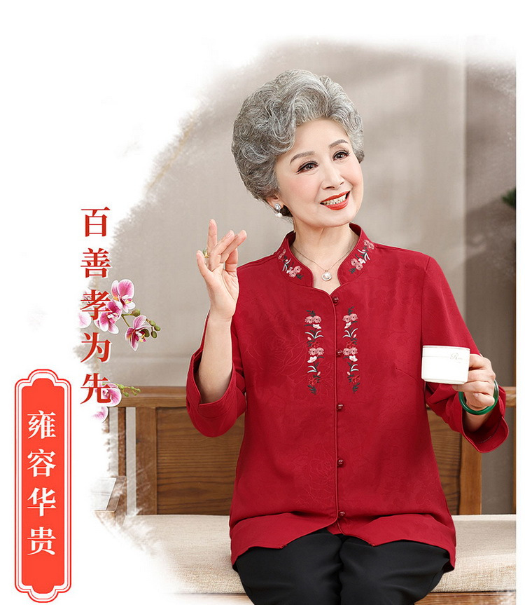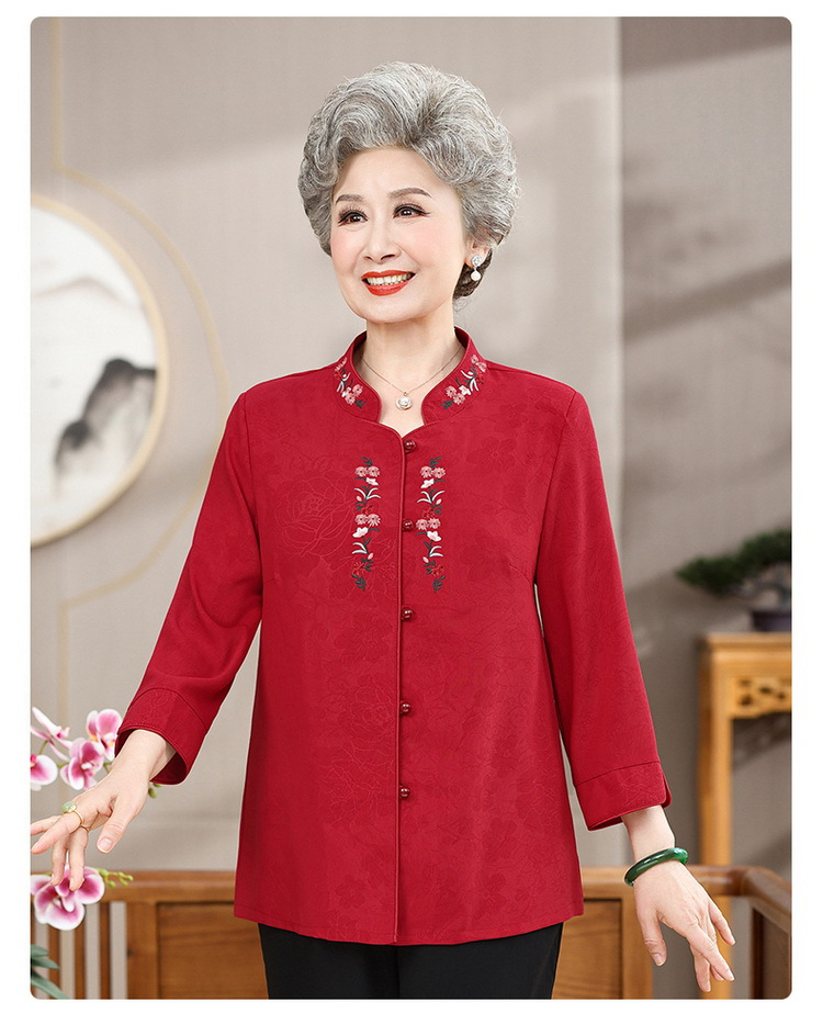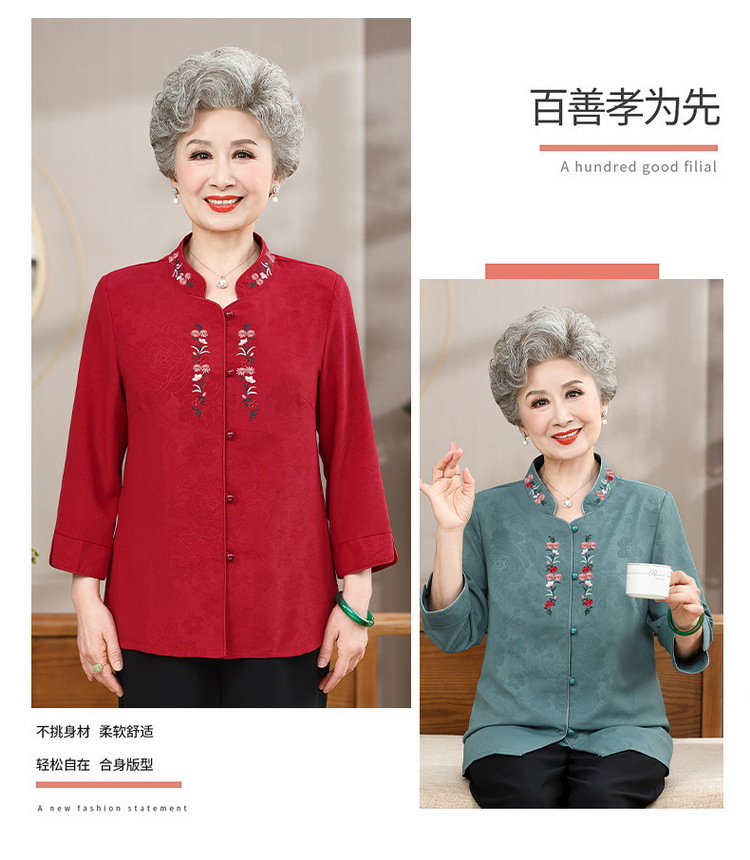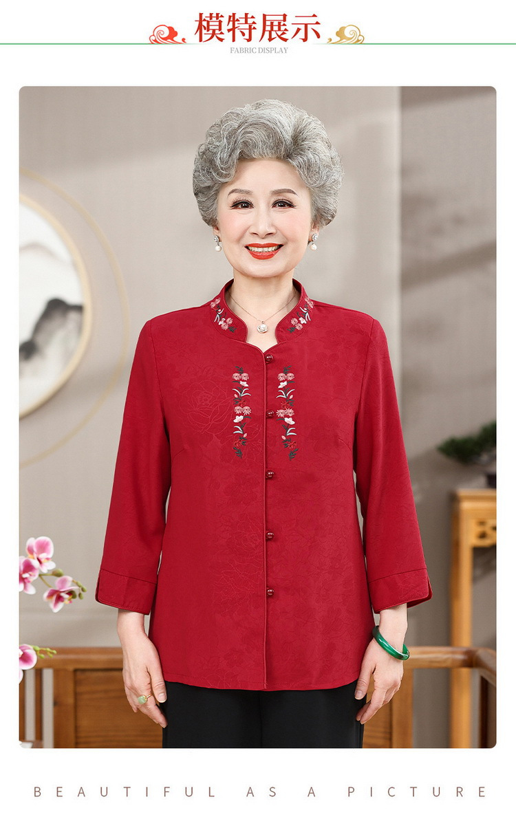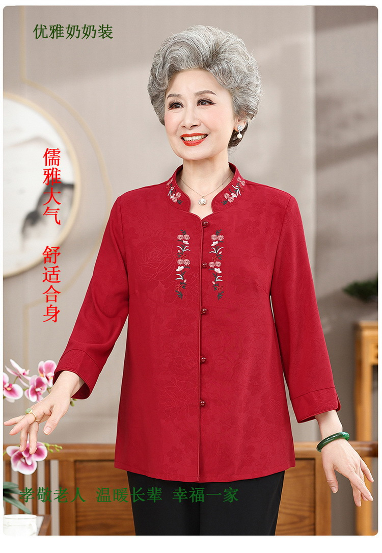 中高年のおばあちゃんの夏のお祝いシャツ、おばあちゃんの結婚披露宴の薄手のシャツ、おばあちゃんのスーツ