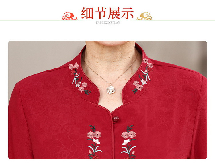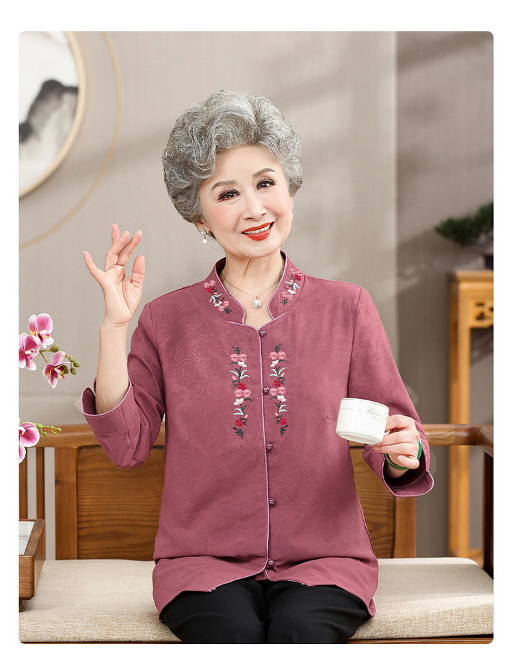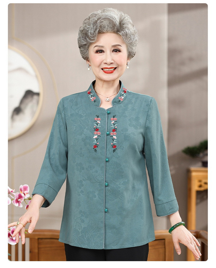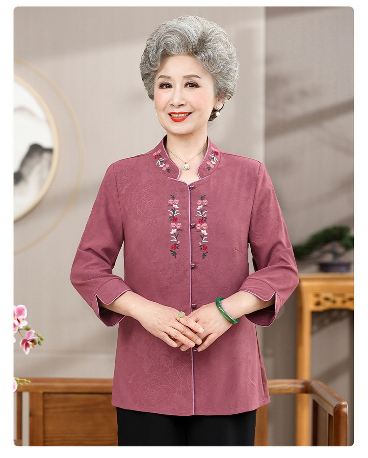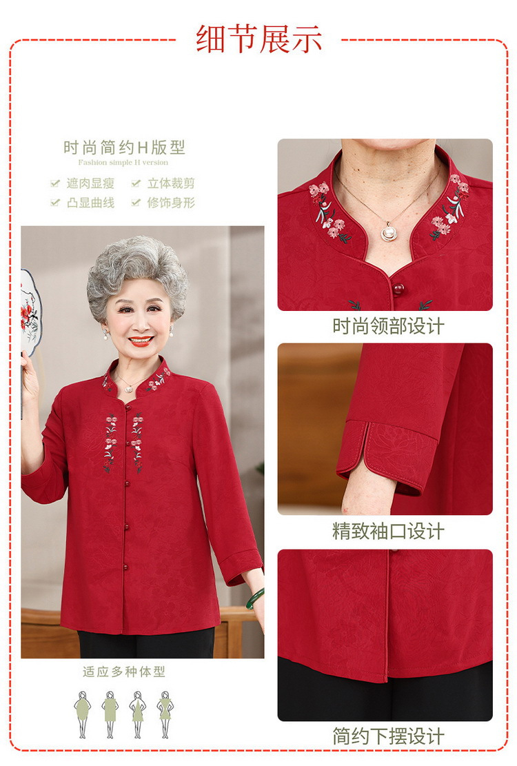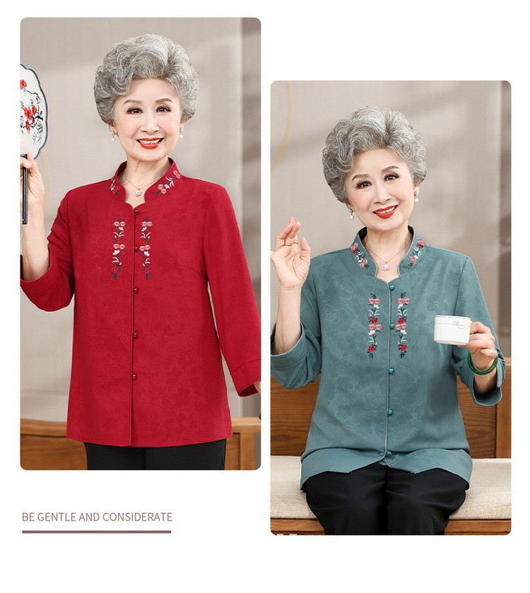 中高年のおばあちゃんの夏のお祝いシャツ、おばあちゃんの結婚披露宴の薄手のシャツ、おばあちゃんのスーツ