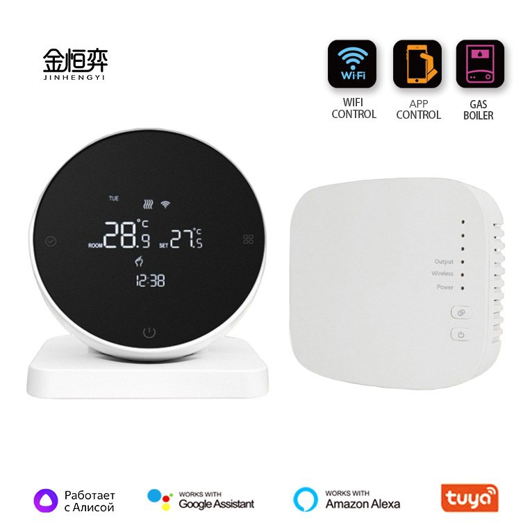 WiFiスマート壁掛けボイラーサーモスタットTuyaアプリ音声リモート温度調節可能ワイヤレス床暖房パネル