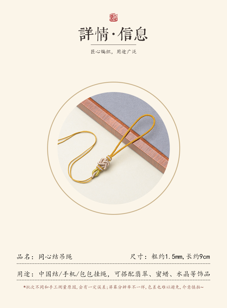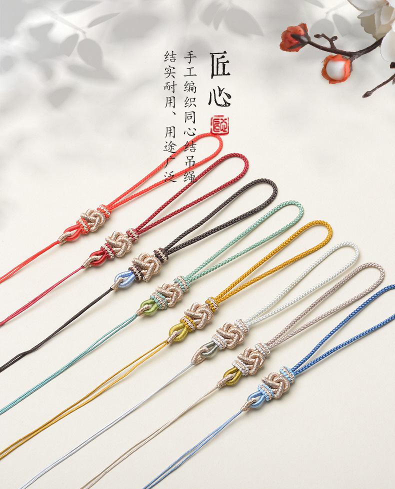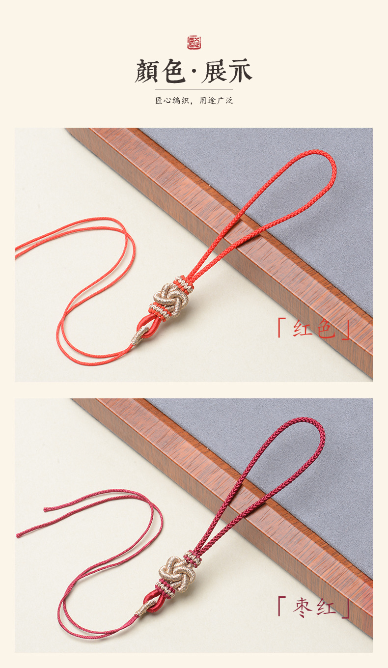 手编绳结吊头挂件指环绳包挂同心结双平结中国结流苏饰品玉石挂绳