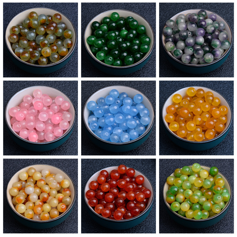 石英岩浅緑漂花玉髄手編み手串ブレスレットオレンジ赤緑6-10mm半製品散珠卸売り