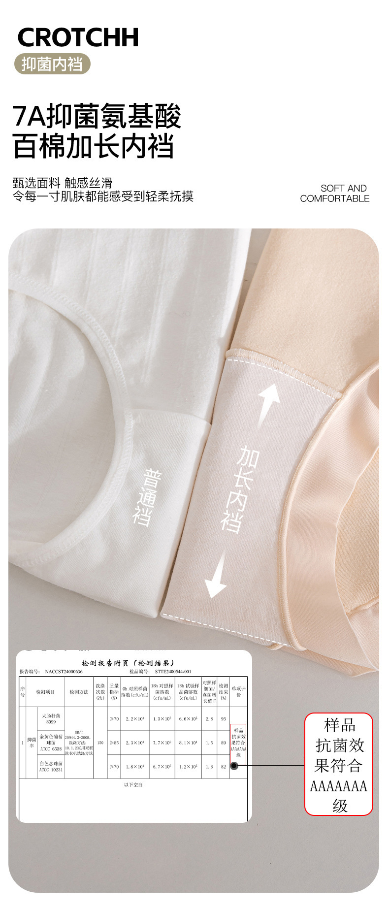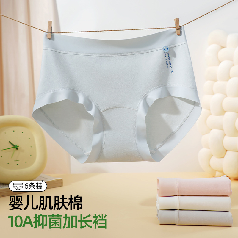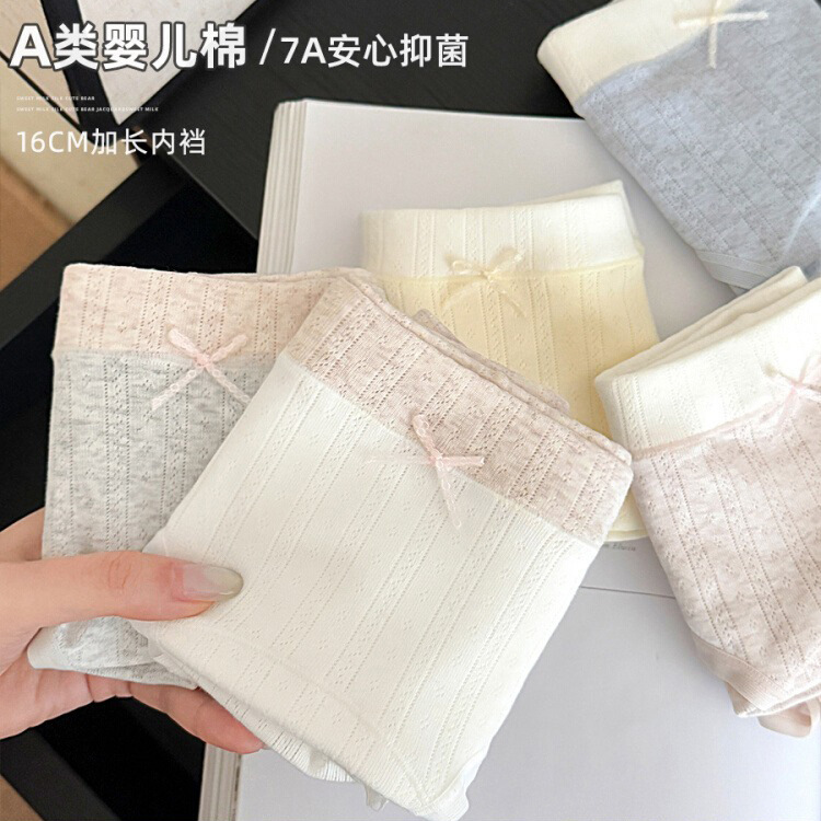 A类婴儿棉女士纯棉内裤女生中腰全棉7A抑菌加长裆大码无痕批发