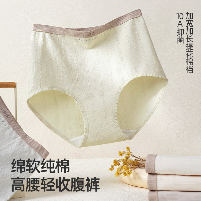 纯棉高腰内裤女士微压收腹提臀10加长抑菌裆浮雕提花女士三角裤女