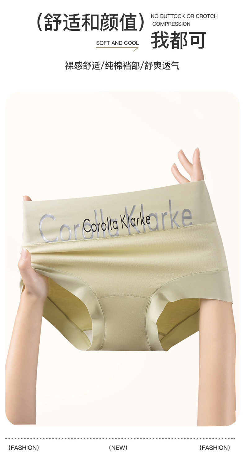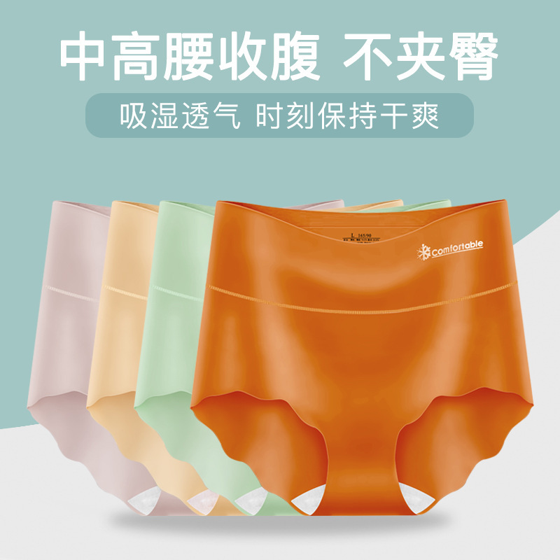 玻尿酸高腰收腹内裤女薄款字母冰丝无痕透气塑身包臀打底三角裤头