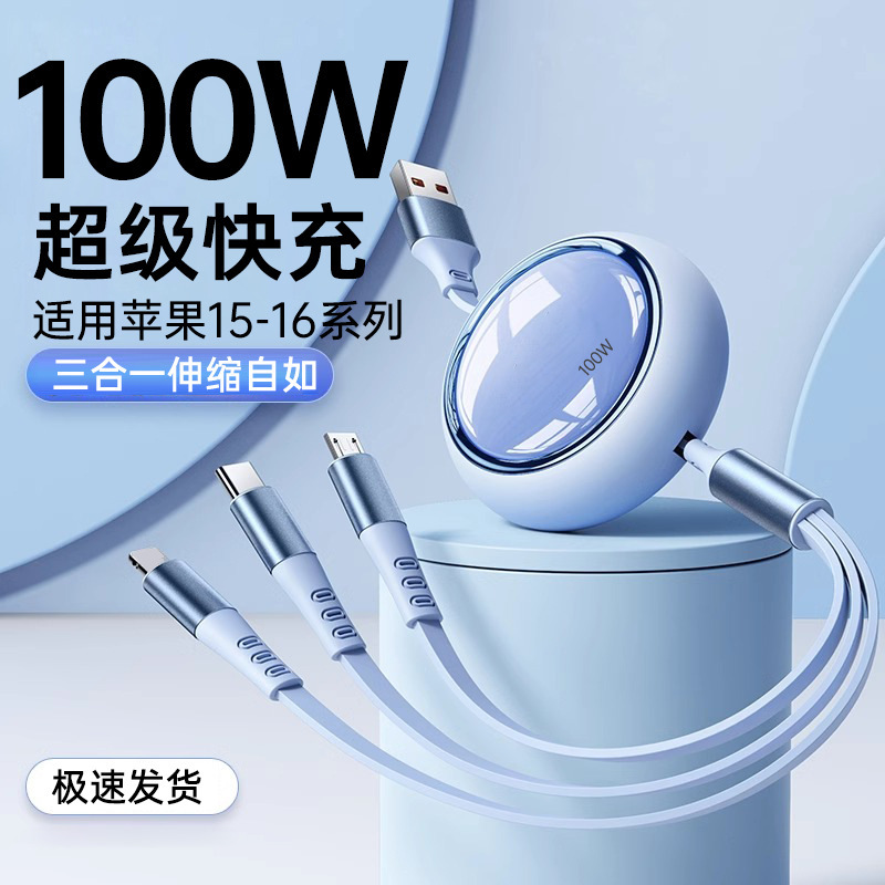 三合一データ線100w急速充電充電器線一引き三適用安卓リンゴ華為typec