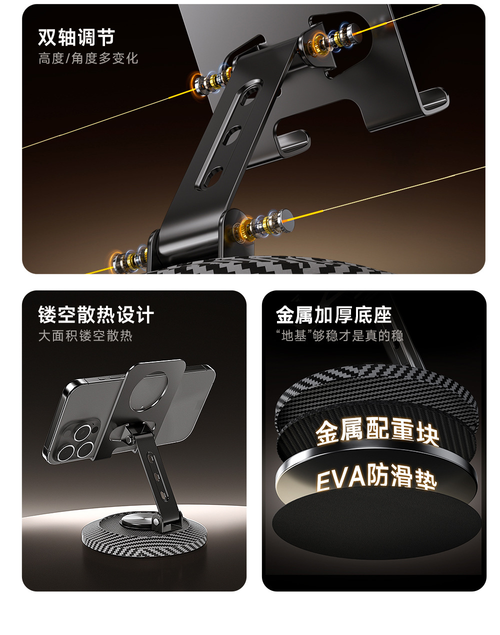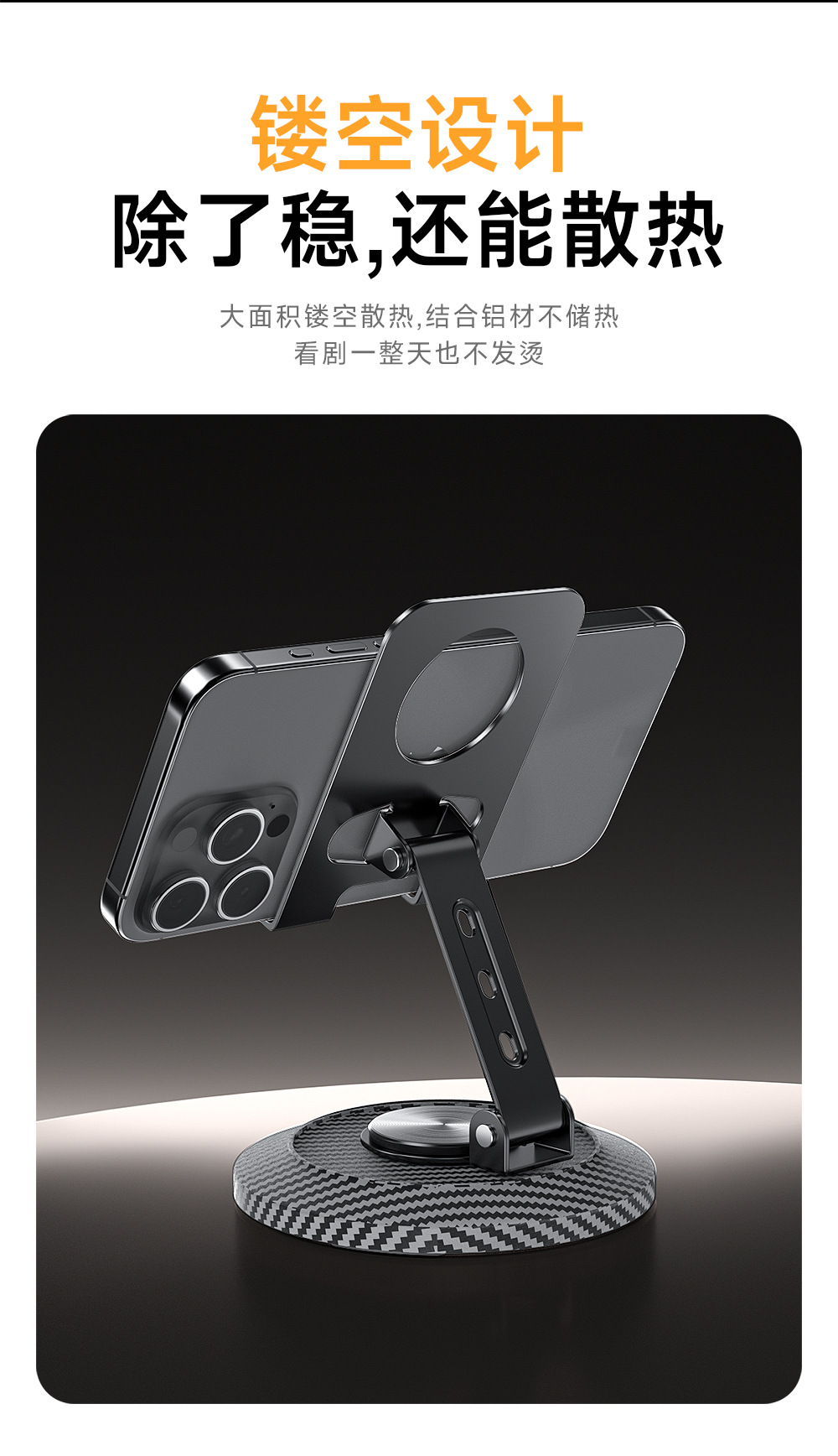 金属旋转手机懒人可旋转折叠镂空胡桃木底座支架追剧办公多功能