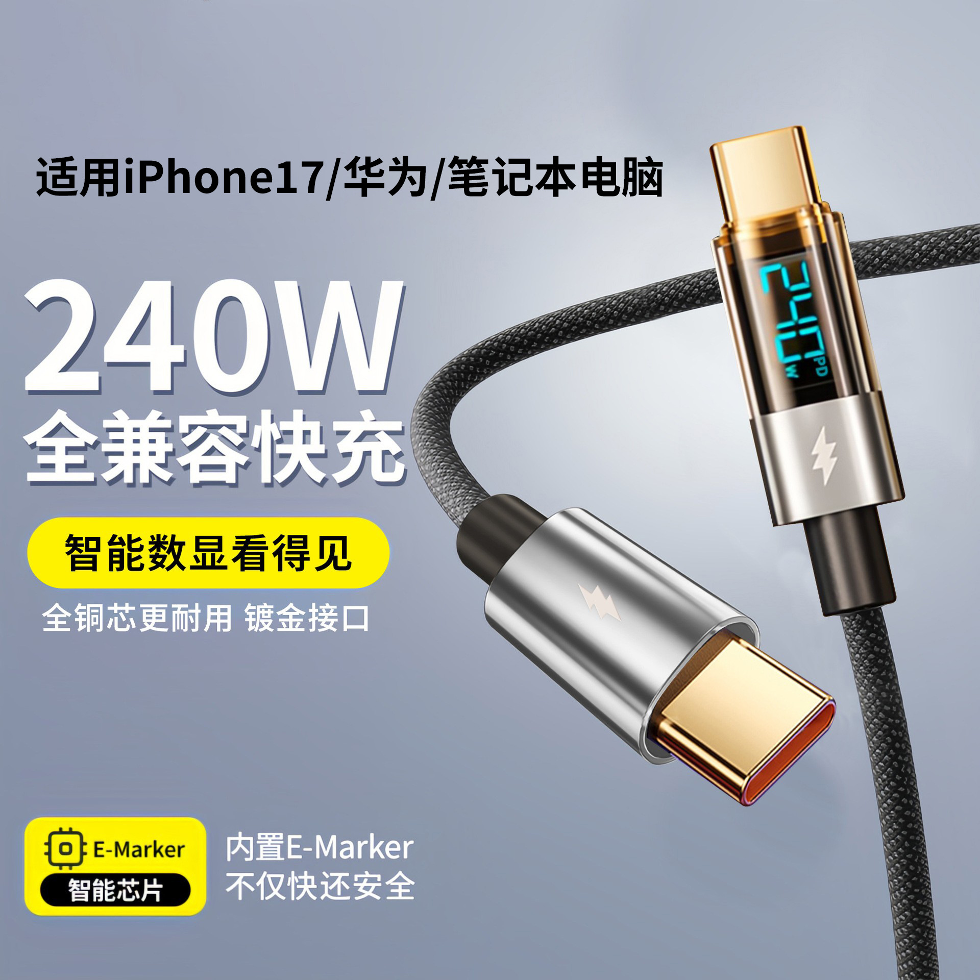 横スクリーンデジタル表示100W超高速充電データケーブルType-Cポートはアップル16華為安卓携帯電話充電に適している