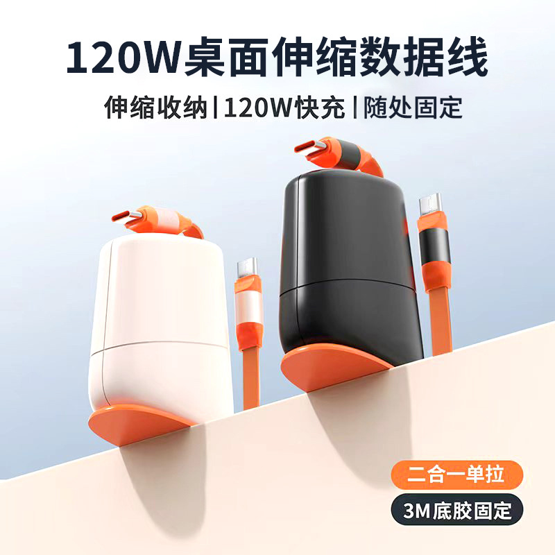 桌面单拉100W伸缩收纳手机数据线多功能Type-C充电线适用苹果华为