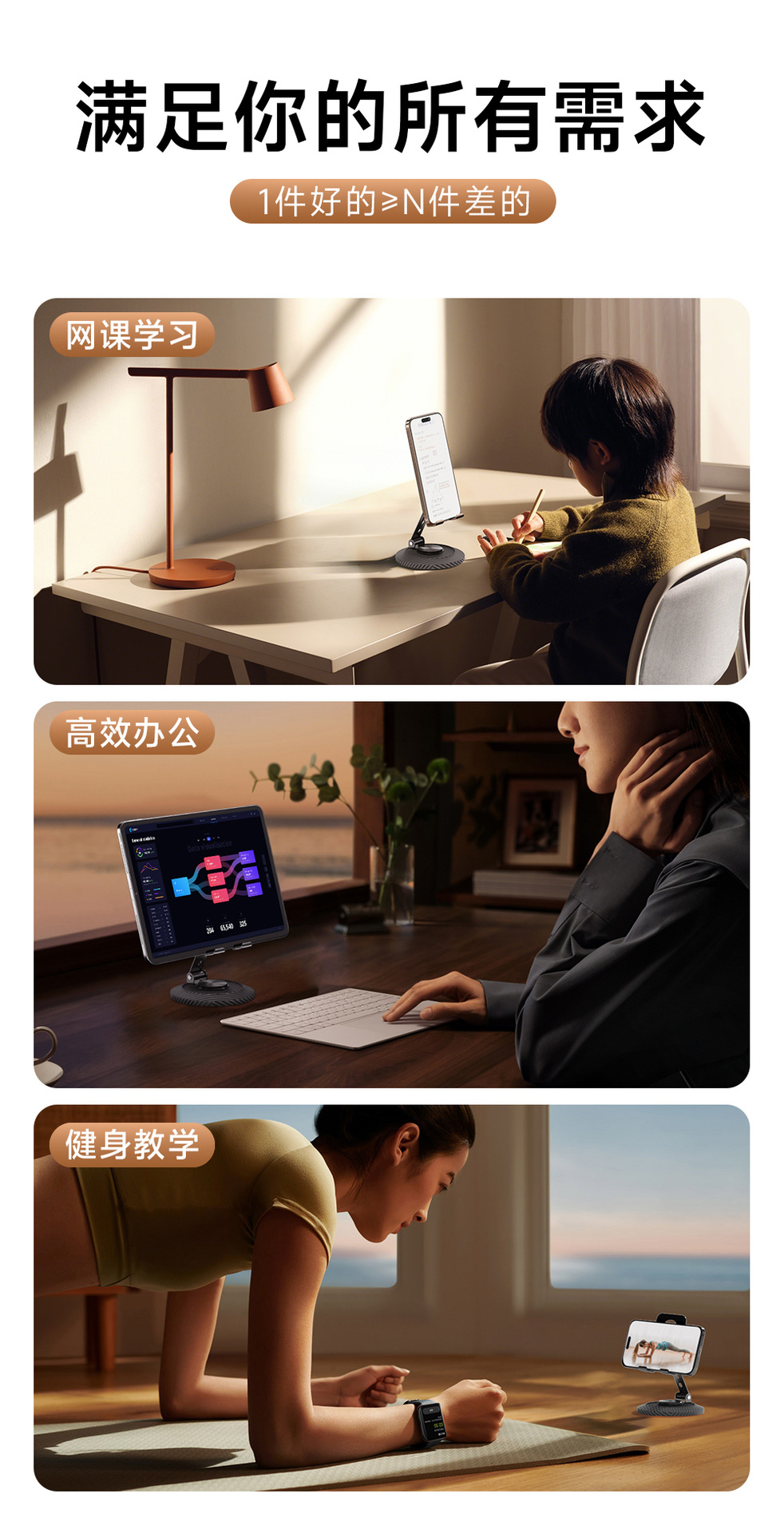 多功能可折叠旋转手机平板通用桌面支架胡桃木纹底座追剧办公追剧