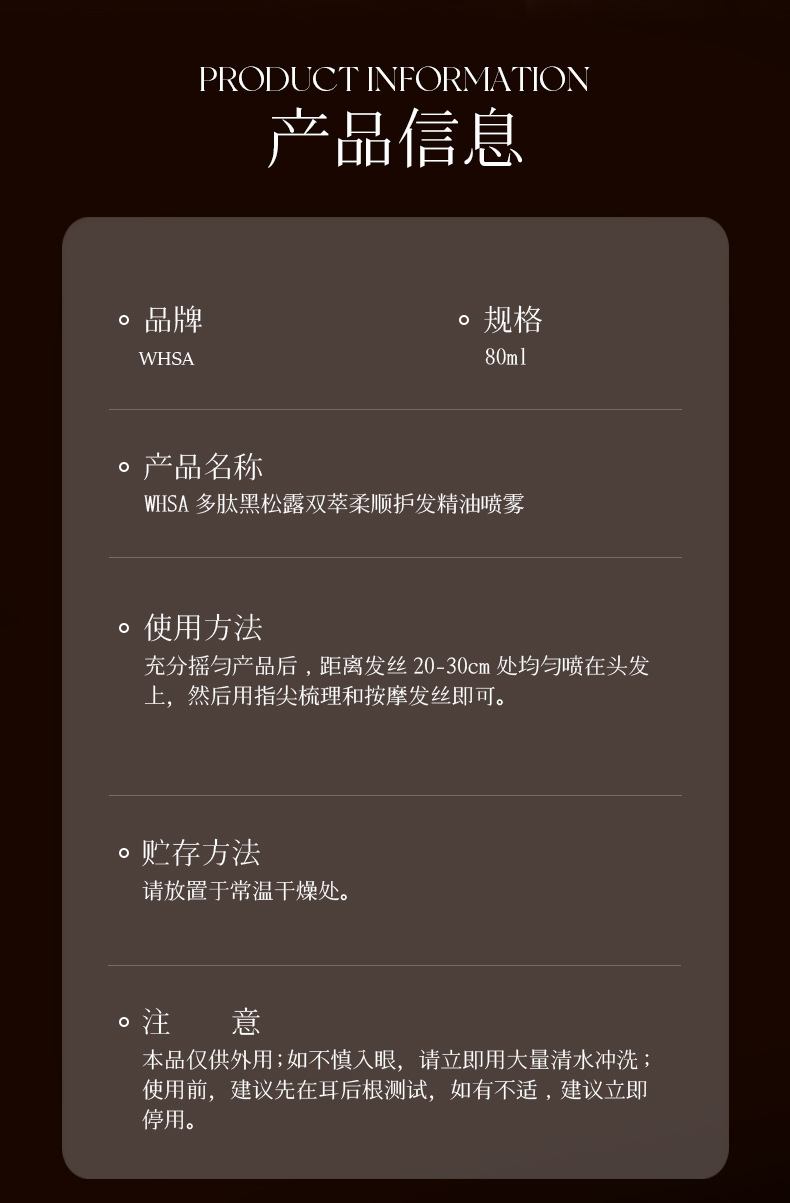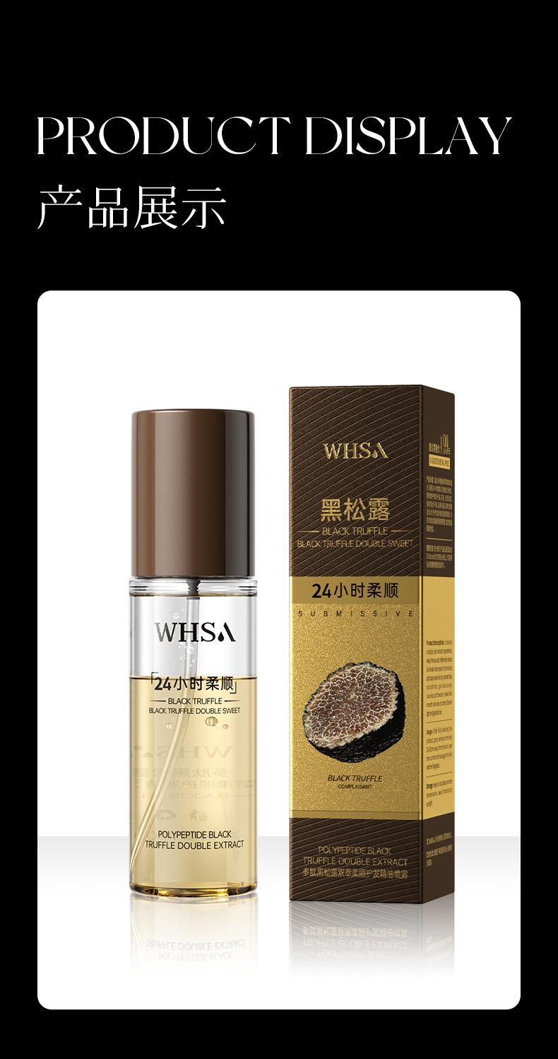 Whsaポリペプチド黒松露双柔順ヘアケア精油スプレー撫平毛躁持続留香工場卸売り