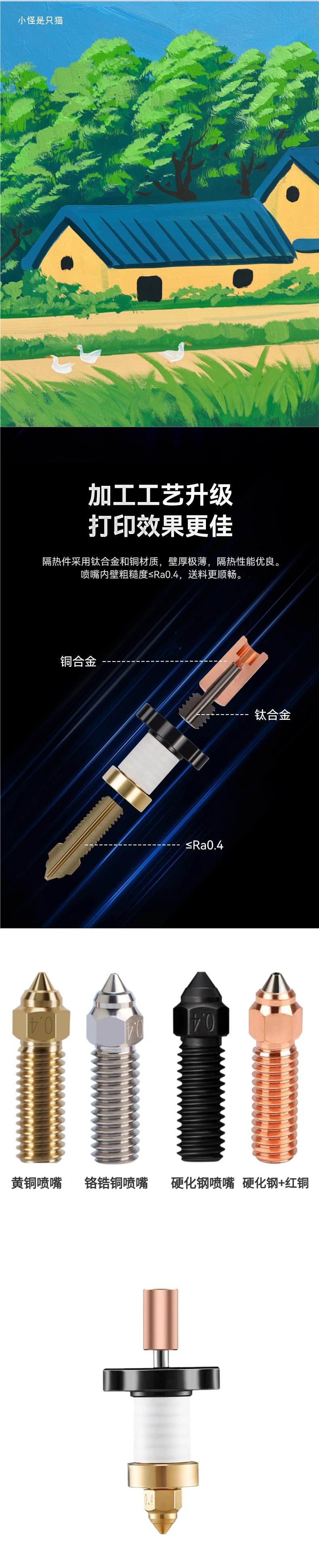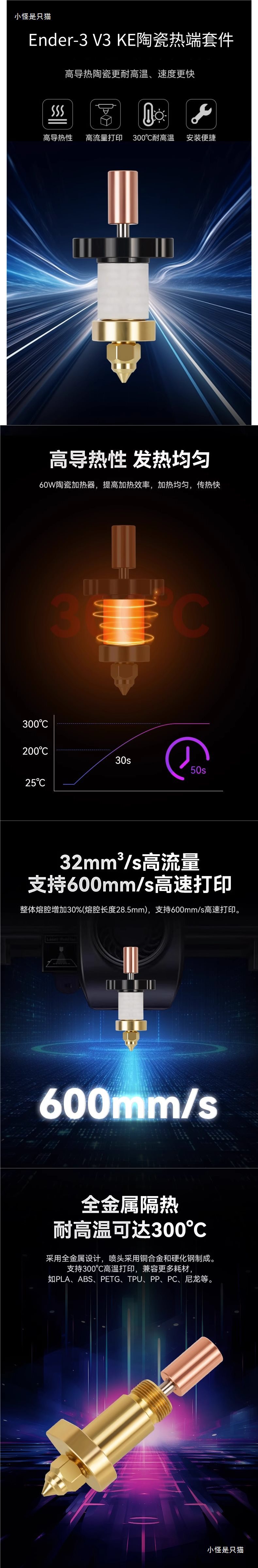 創想Ender-3 V3 KEセラミックホットエンドキット高流量鋼ノズル3Dプリンタ部品