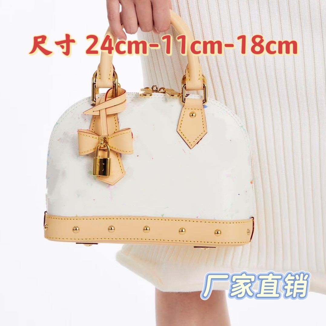 村上隆共同ブランド AlmaBB ハンドバッグ ホワイト 3 カラー 本革 シェルバッグ ショルダー クロスボディ リボン ポータブル レディースバッグ
