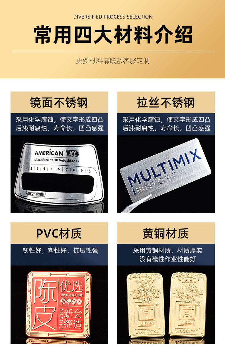 金属铭牌标牌304不锈钢合金uv腐蚀丝印标识牌高光铝牌家具箱包牌
