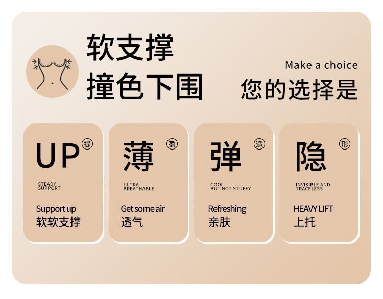 新型反重力無痕U美ベスト式固定カップ反重力ソフトサポート小胸が集まって垂れ下がるのを防ぐ下着