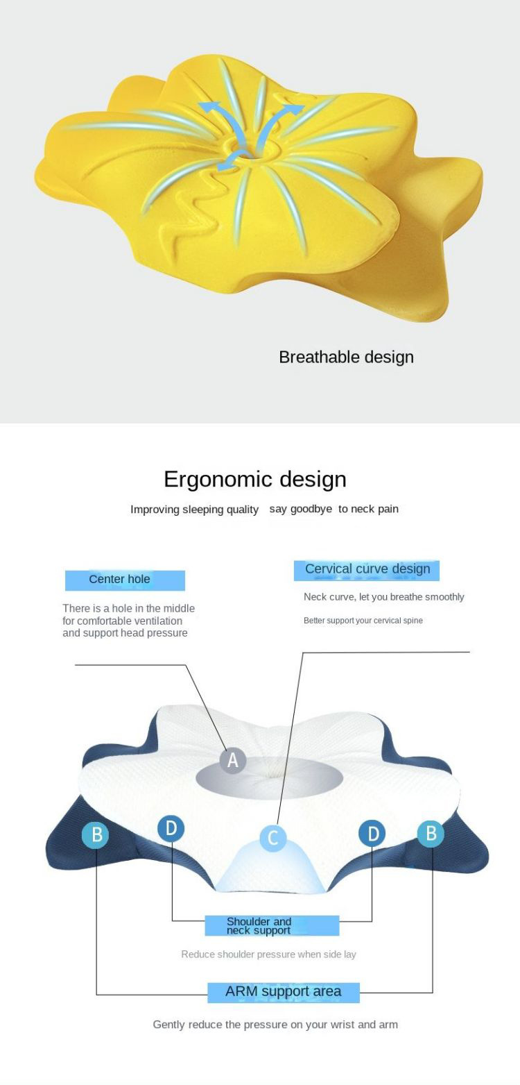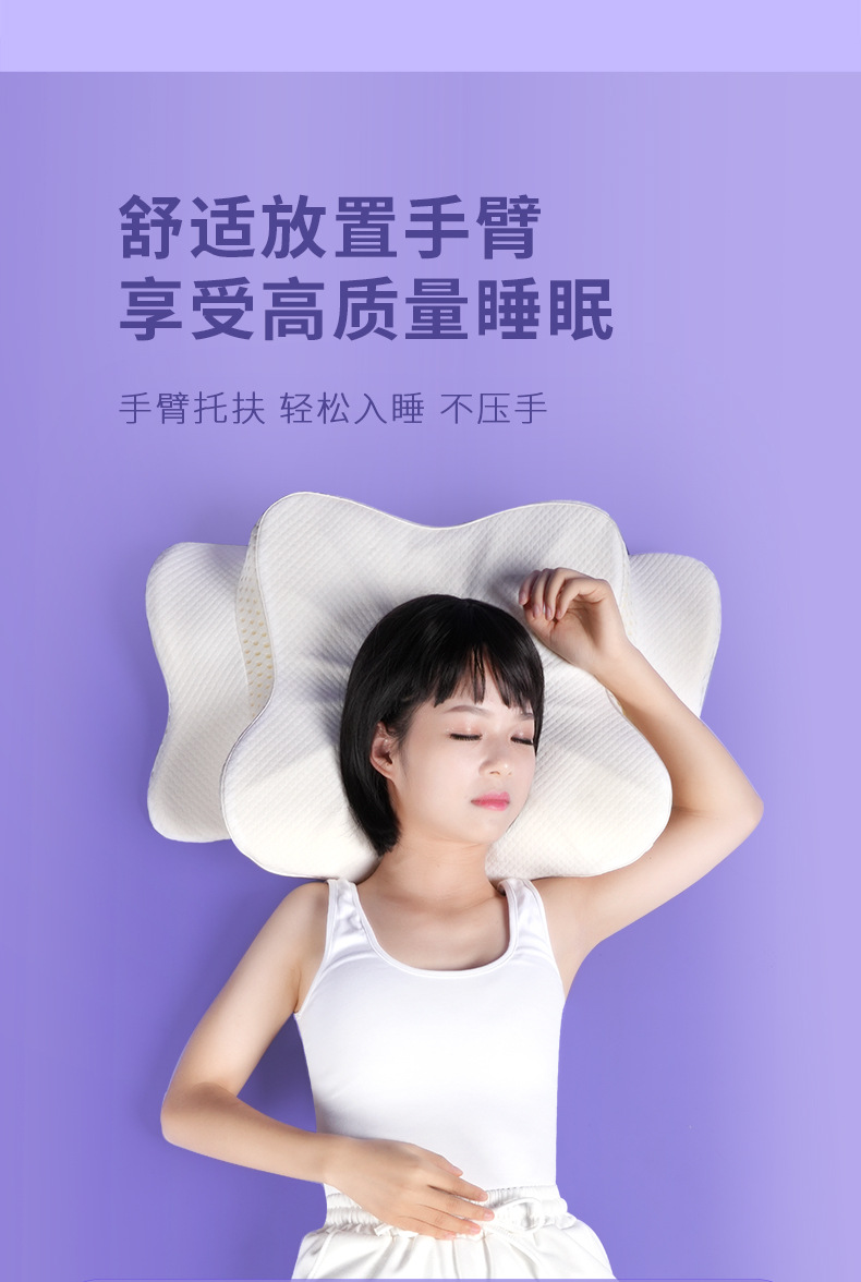 横向き寝、ゆっくりと反発する首枕、スペースコットン、低反発睡眠枕、人間工学に基づいた頚椎枕、横向き寝、バタフライ型