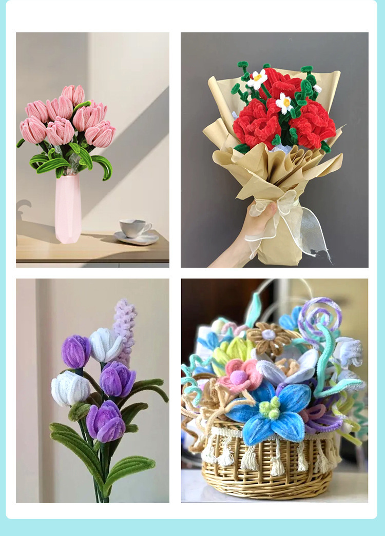 金喜宸ねじり棒手作りDIY花束材料パック、多用途子供用ぬいぐるみ毛糸、太くて密なねじり棒