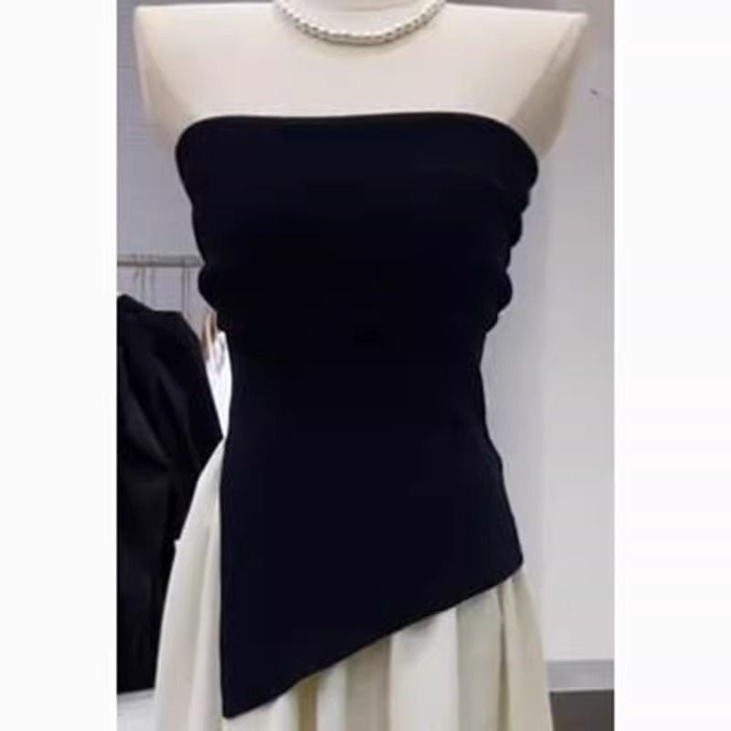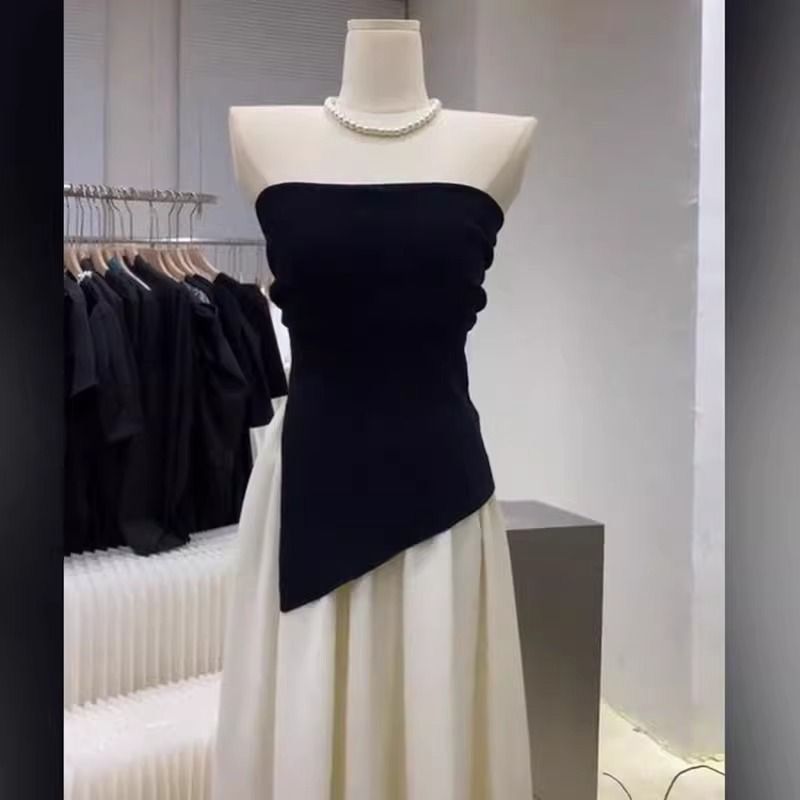 白黒のストラップのワンピースの女性2025の新型の春夏のデザイン感の小さい大衆の長いスカートは腰を収めてやせているリゾート風を現します。