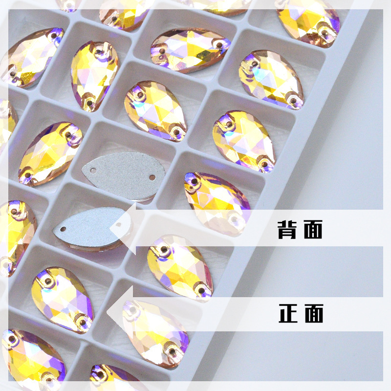 威尘K9水滴彩色AB平底双孔手缝钻鞋包DIY平扣水晶服装配件饰品