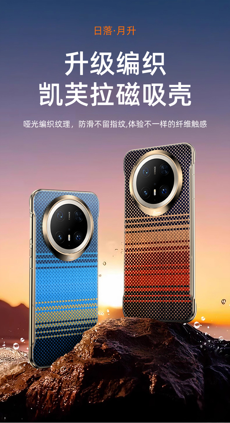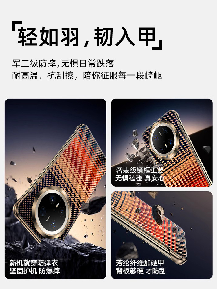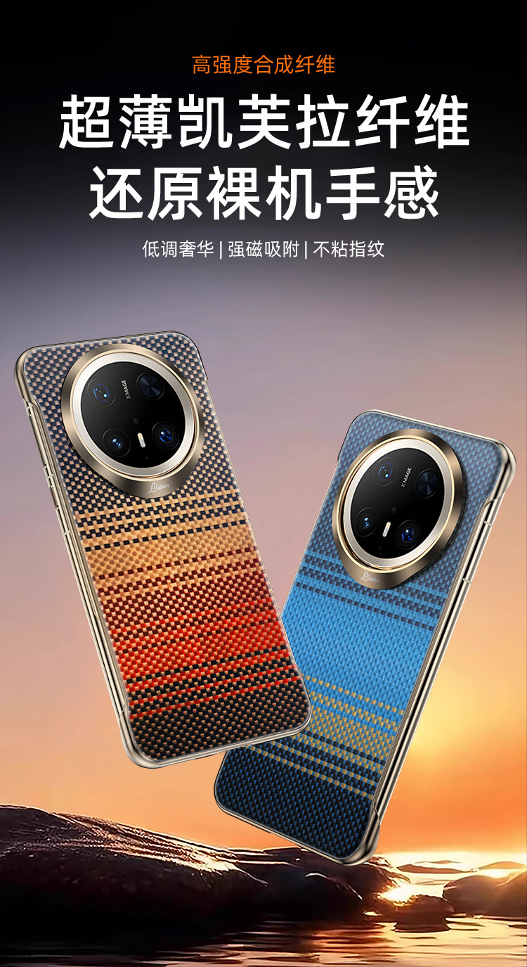 适用华为mate80/80pro凯夫拉芳纶纤维手机壳磁吸轻薄商务简约半包