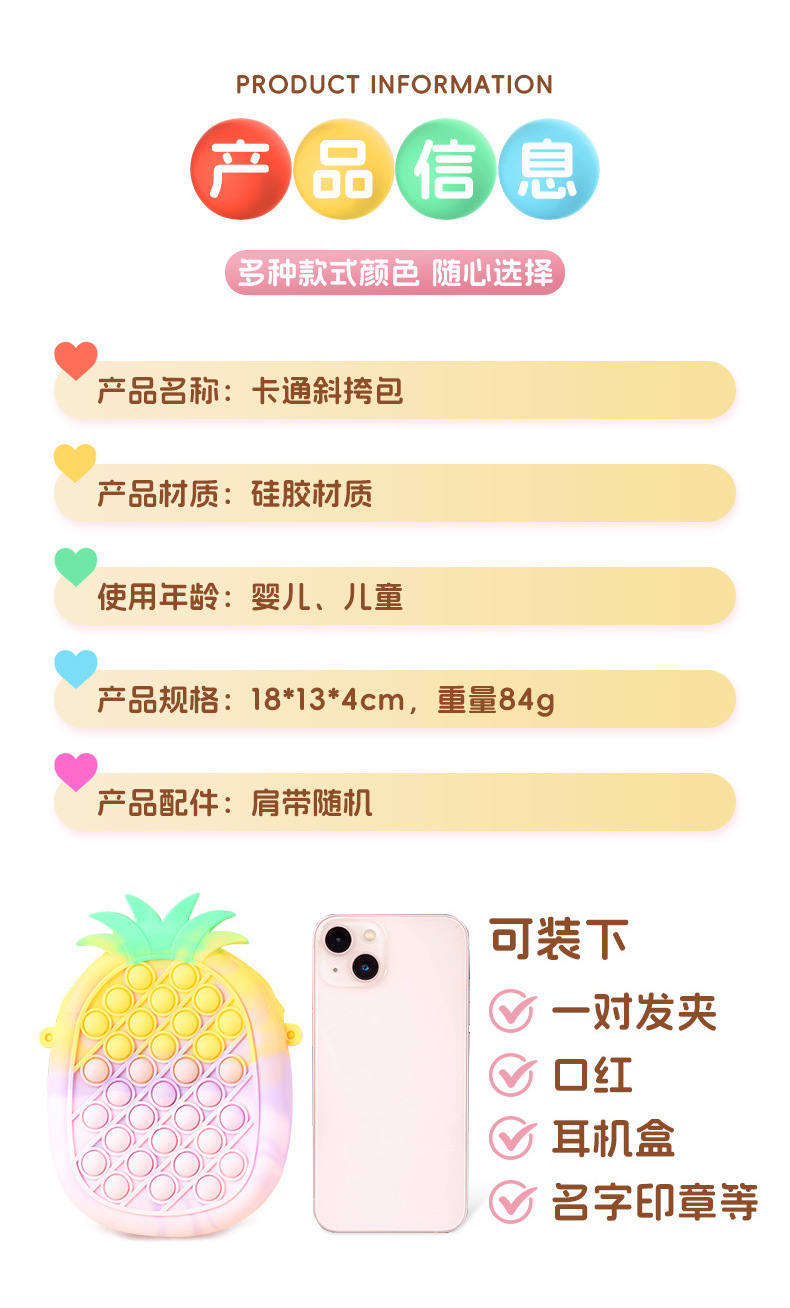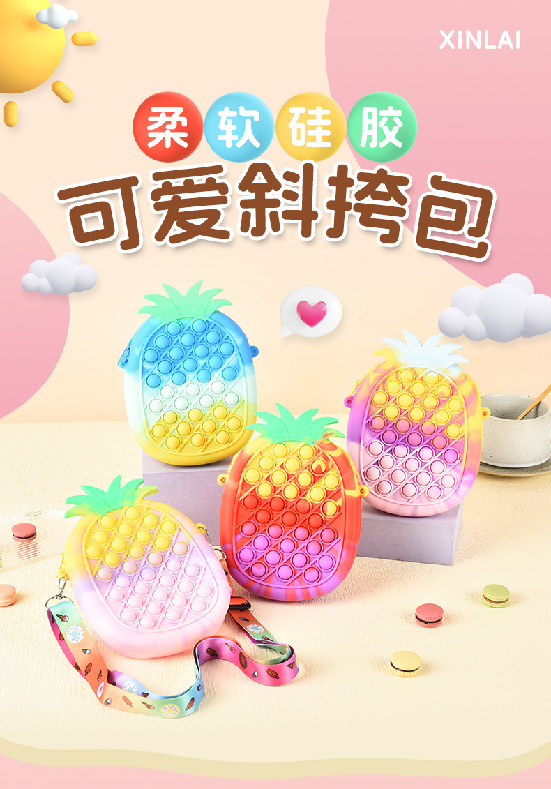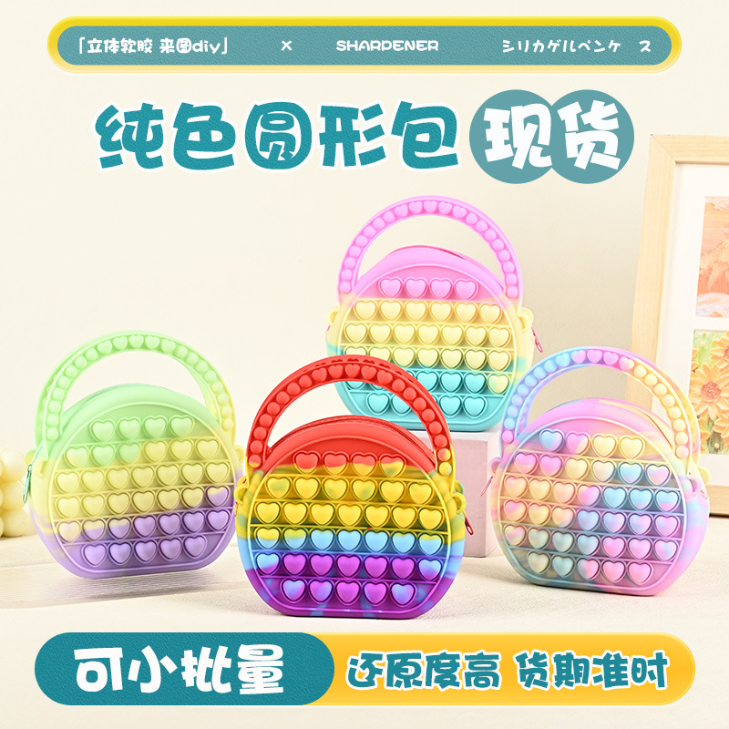 新款圆形硅胶包斜挎单肩爱心手提包女士儿童卡通解压零钱包