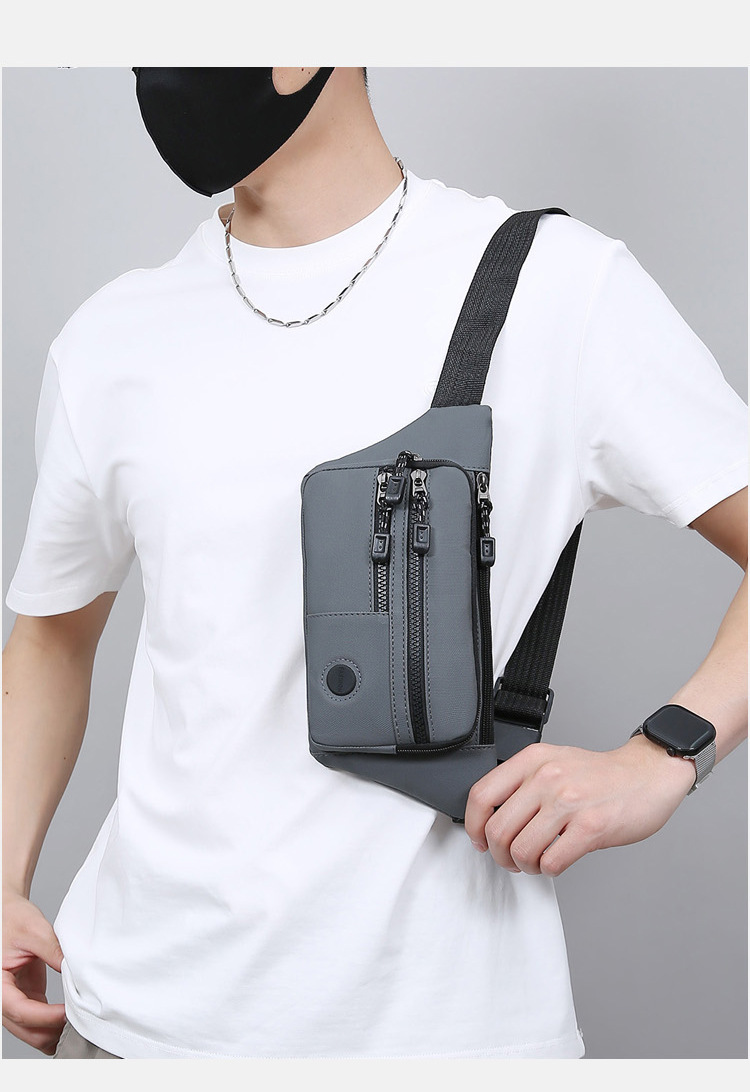 ホット販売ソリッドカラーのシンプルな軽量メンズチェストバッグ多層ポータブルレジウエストフィルムカジュアル外出