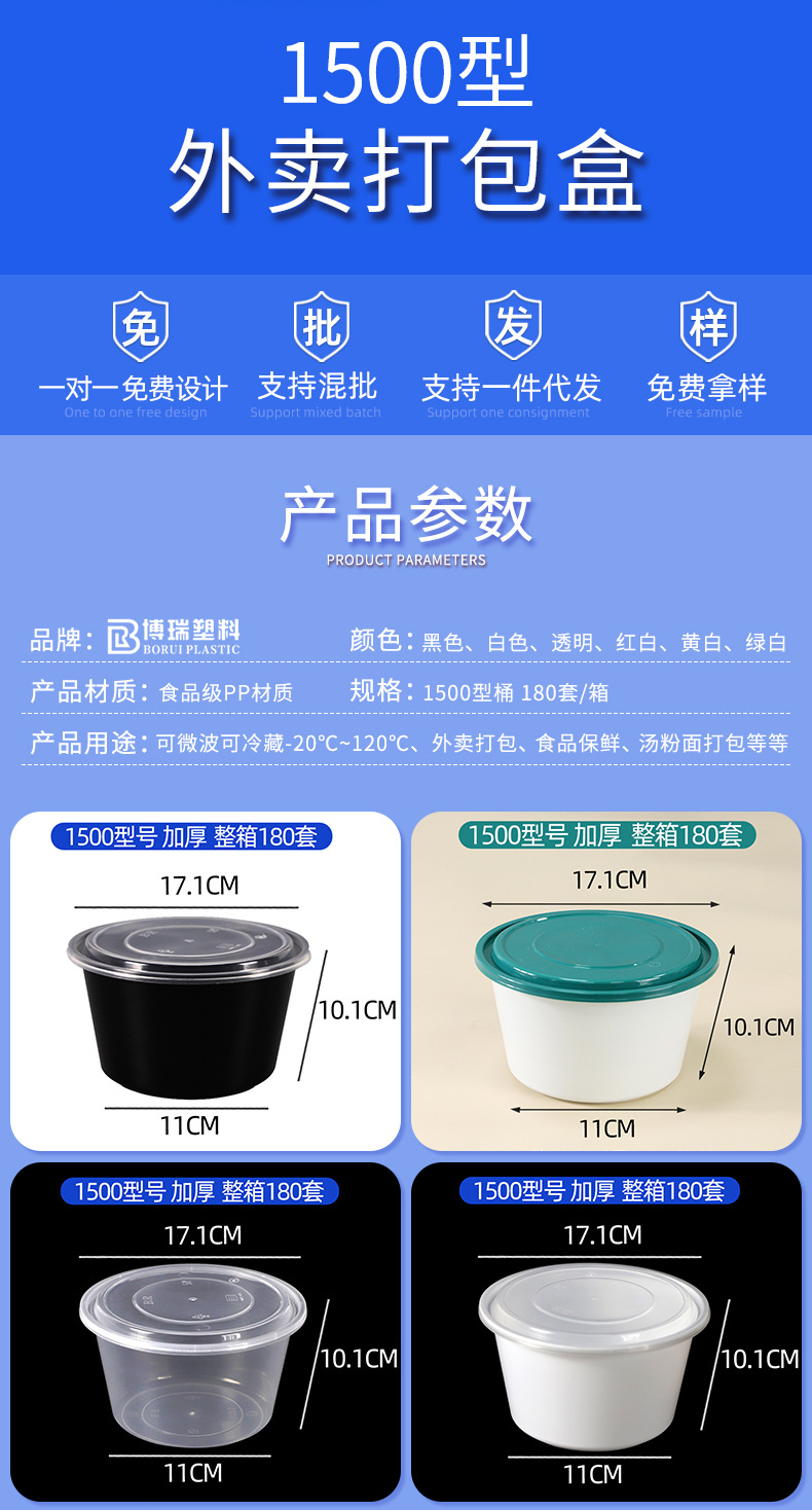 使い捨て碗スープ麺分離二重包装箱出前弁当箱卸売り1250蓋付き工場プラスチックpp円碗