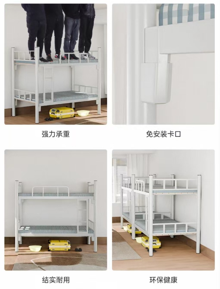 上下に鉄製のベッドを敷いて、寮の上下のベッドをカスタマイズします。