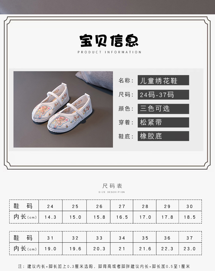 漢服の靴の子供の古風の刺繍の靴の女の子の中国風の時代の赤ちゃんの古い北京の布の靴の代行