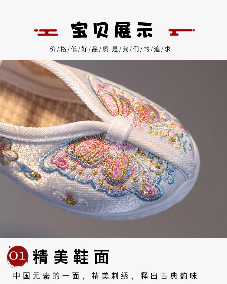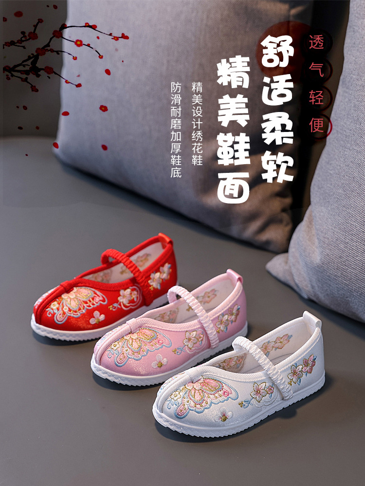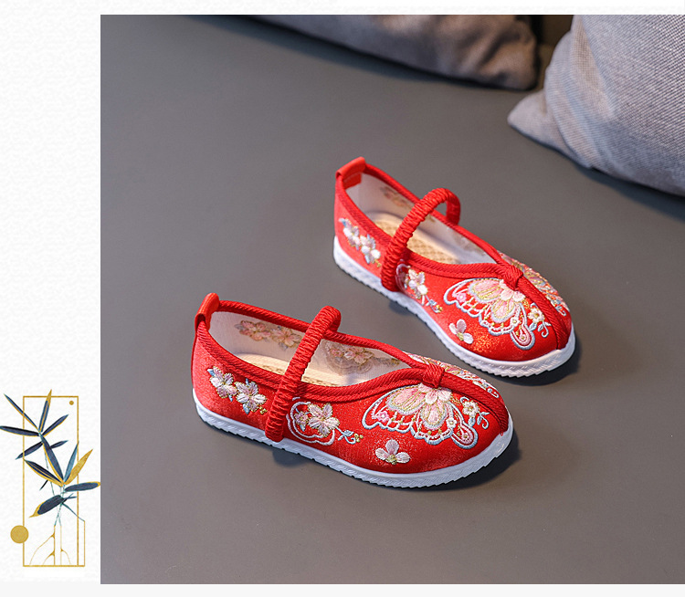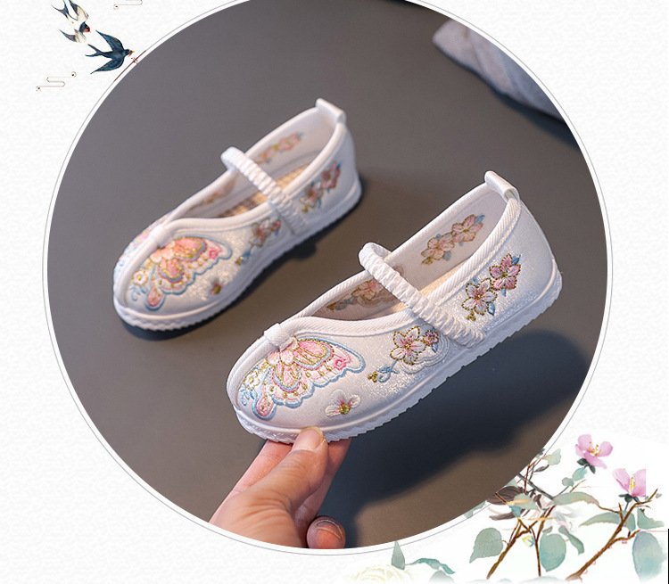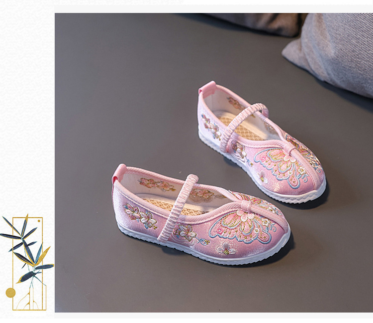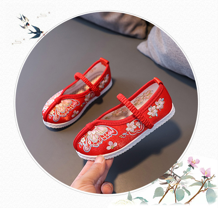 漢服手作り女の子刺繍靴子供古い北京布靴民族風学生表演出靴ダンス靴