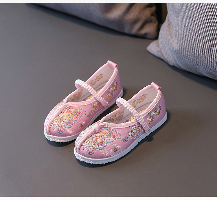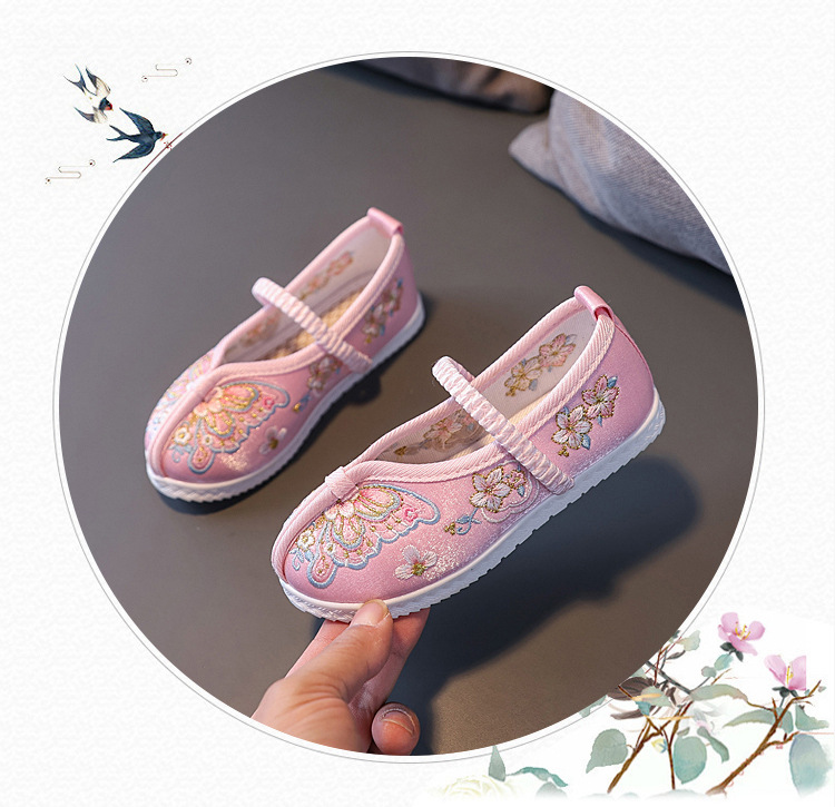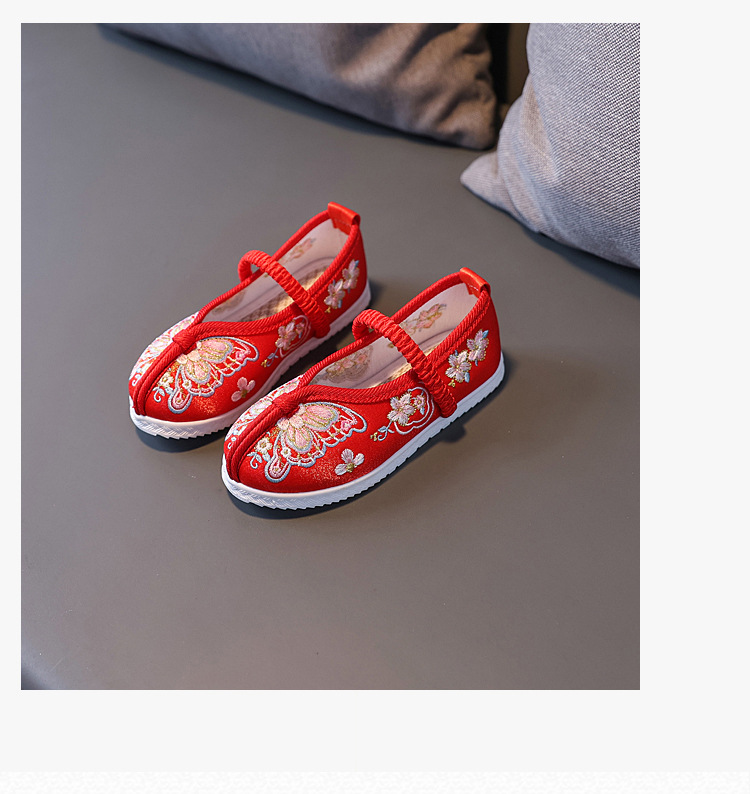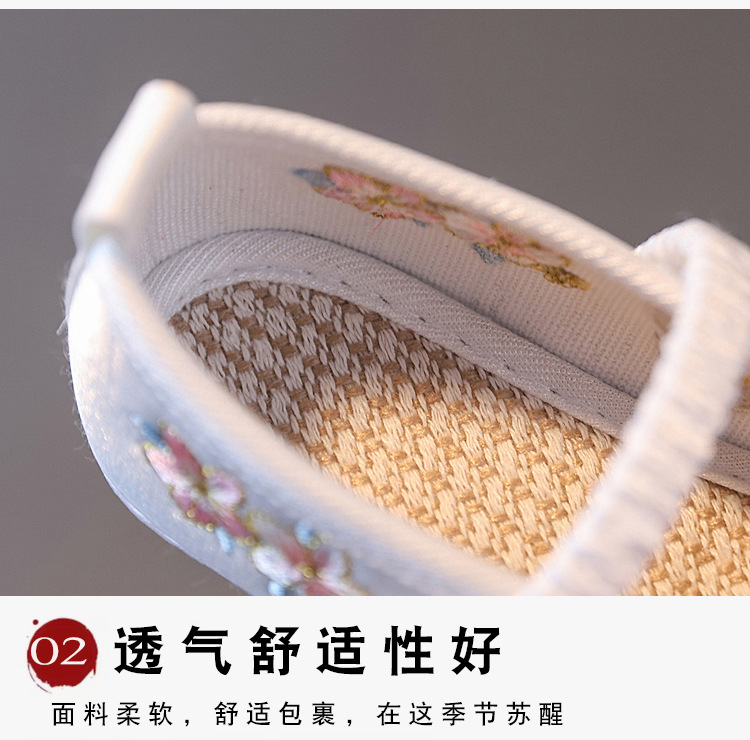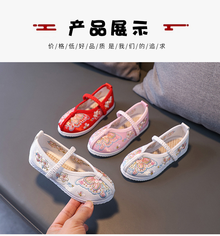 新型の女の子の漢服の靴の中国風の時代の靴の柔らかい底の古い北京の子供の布の靴の手作りの女の子の刺繍の靴
