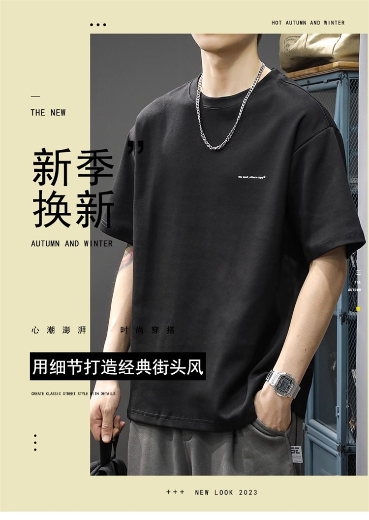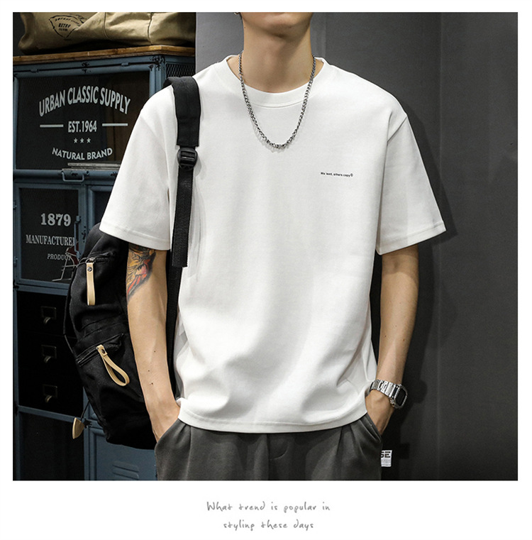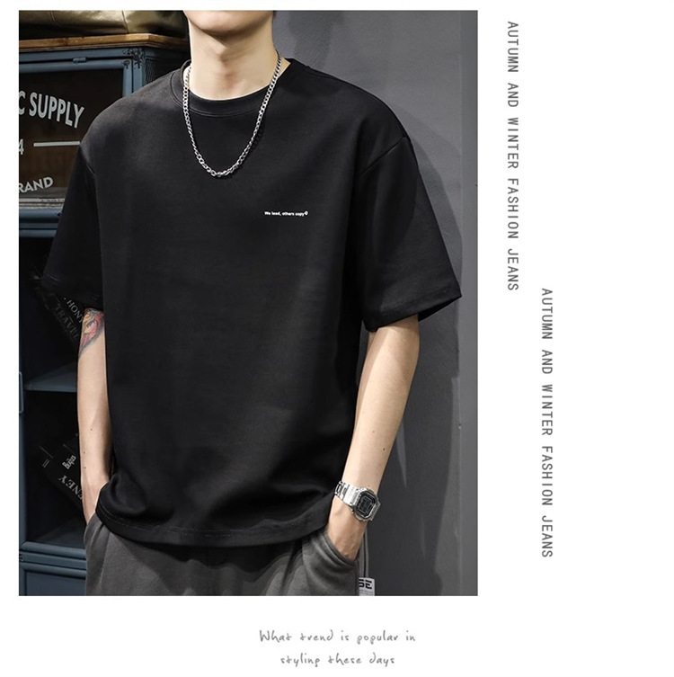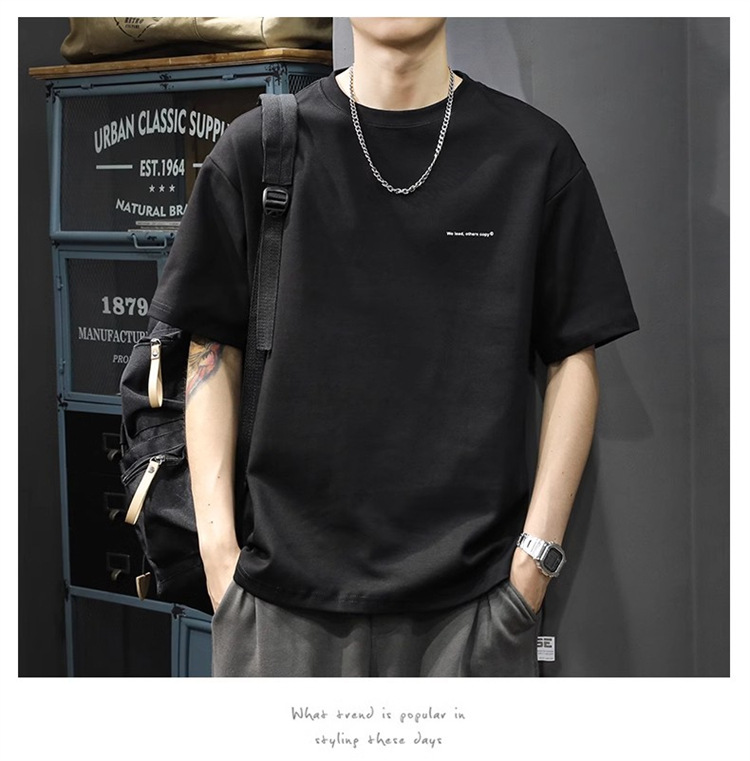 新しいヘビーウェイトアメリカン半袖Tシャツメンズゆったり大きいサイズ150kgシンプルカジュアルボトムストレンディブランド半袖Tシャツ夏