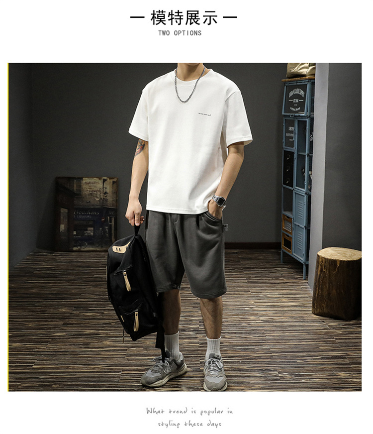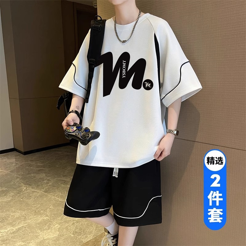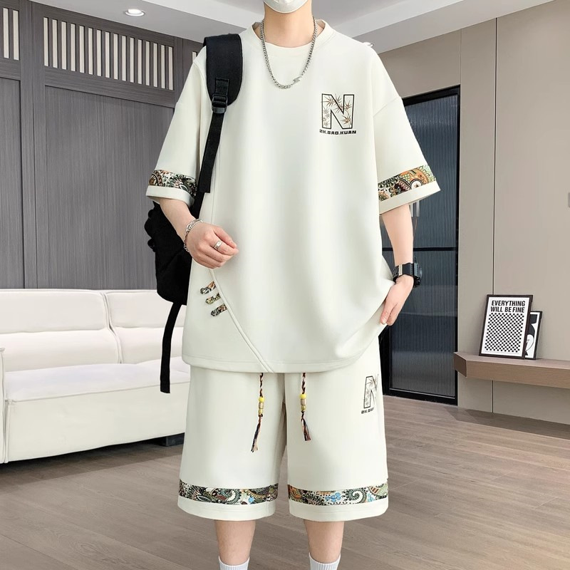 2025 夏の新国民風スーツメンズファッションカジュアル大きいサイズラウンドネック半袖 Tシャツショーツ 2 点セットトレンディ