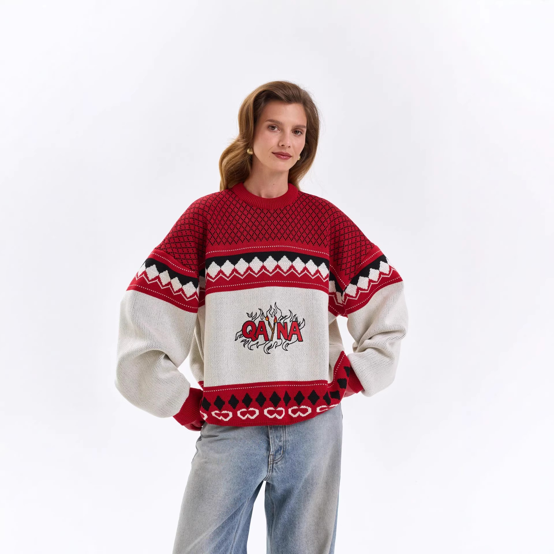 2026秋冬款复古费尔岛提花毛衣女宽松休闲彩色慵懒风针织衫上衣潮