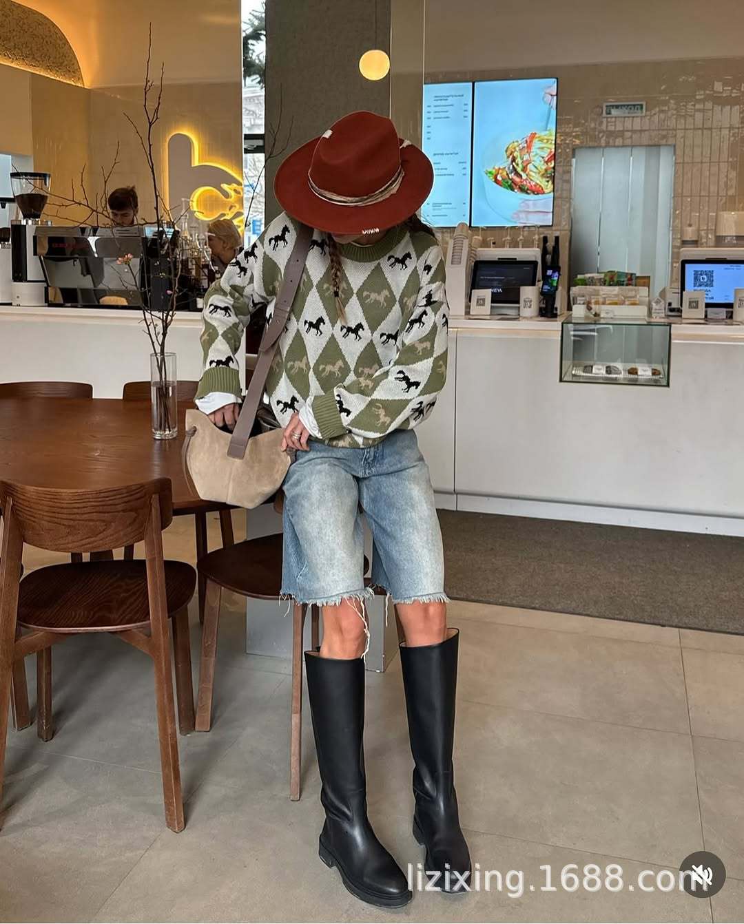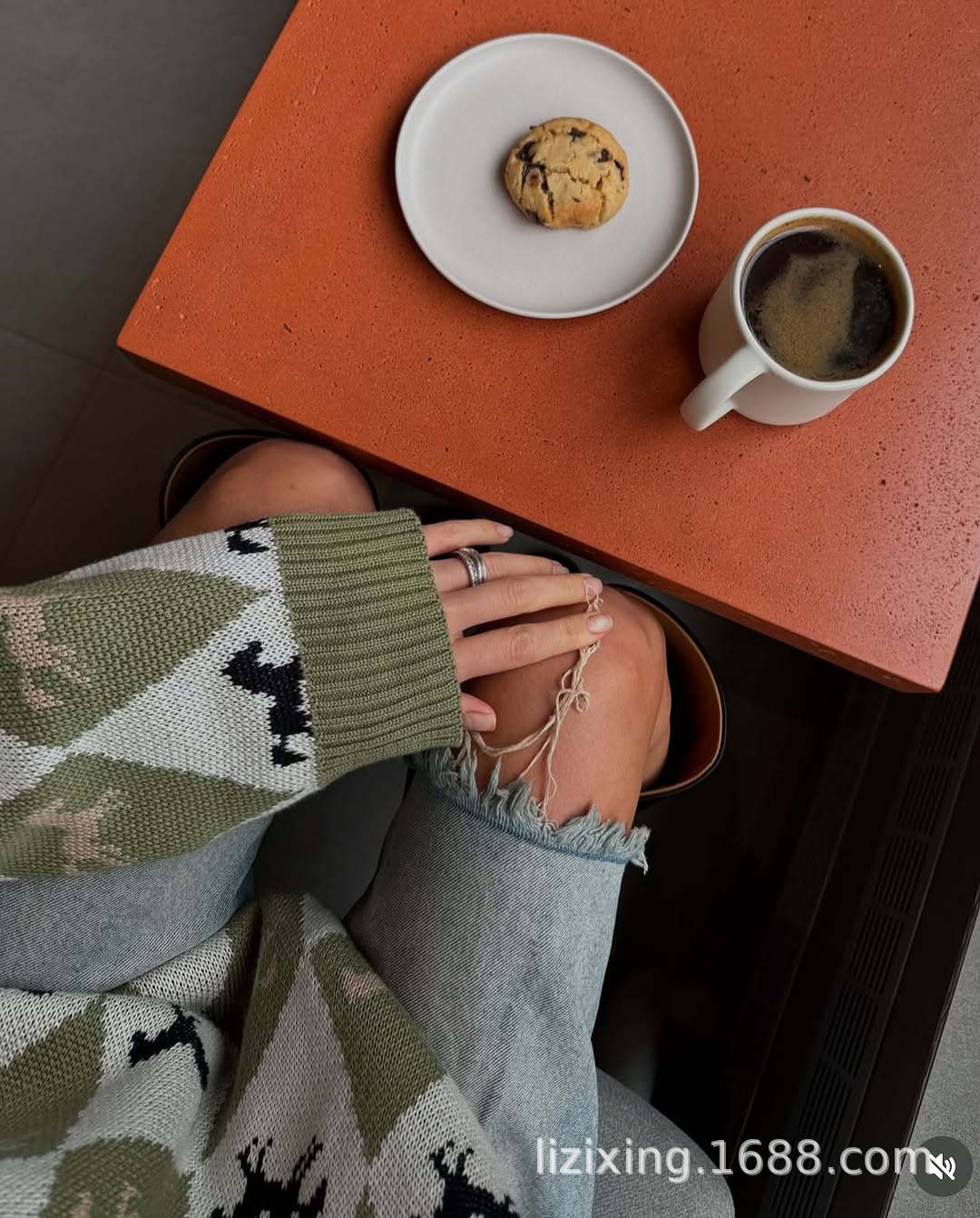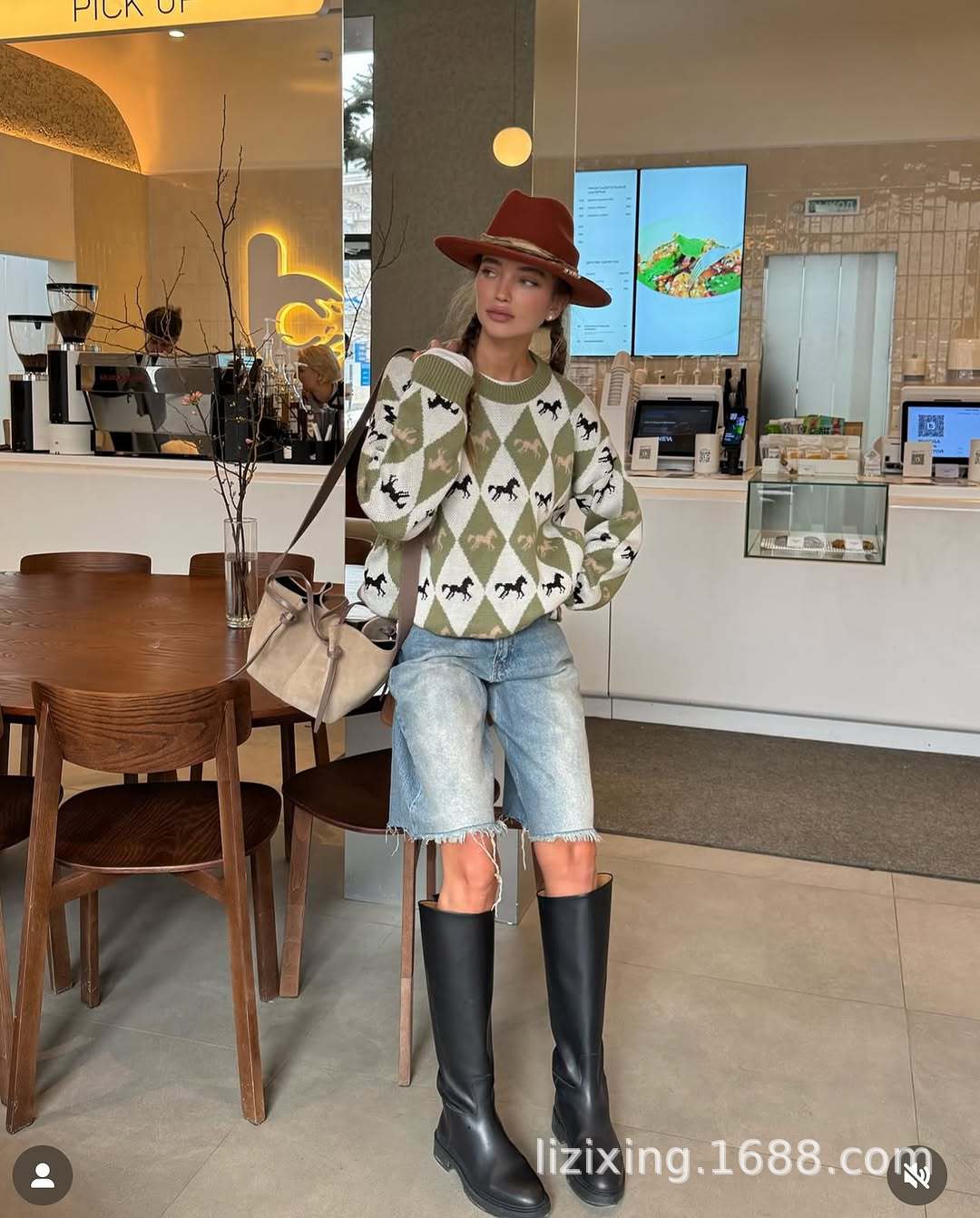 ヨーロッパとアメリカの秋冬ラウンドネックセータージャケット2025新しい長袖セーター多用途コントラストカラージャカードトップアウター