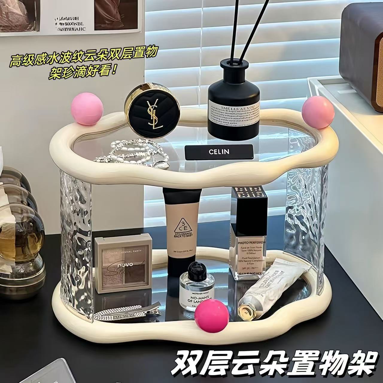 デスクトップクラウド収納ラック、ハイエンドアクリル化粧品と香水収納ボックス、スキンケア製品収納ラック