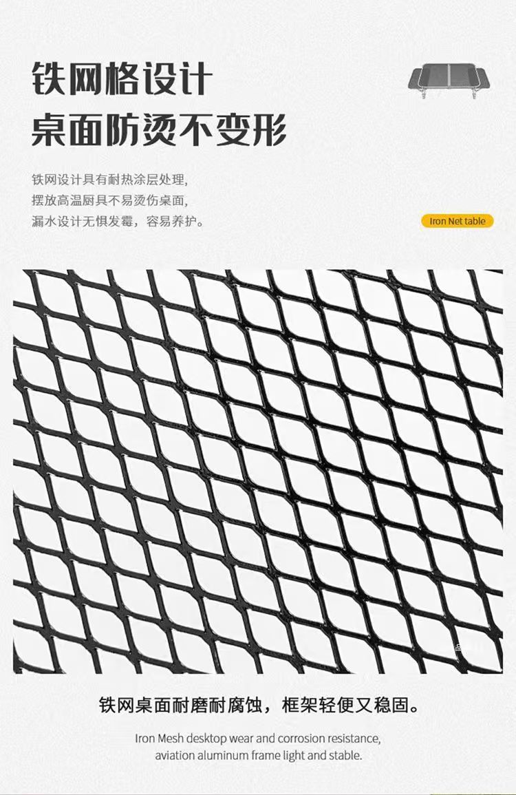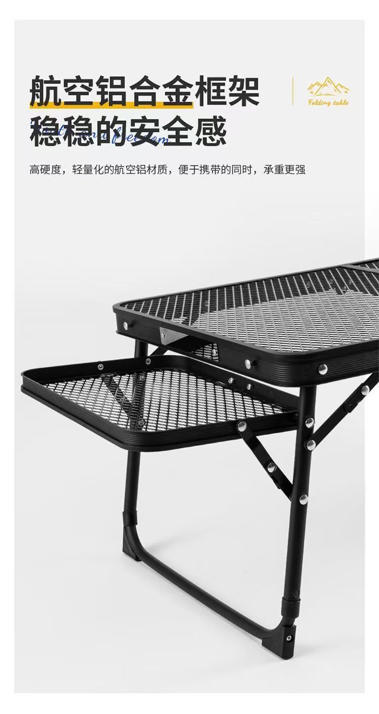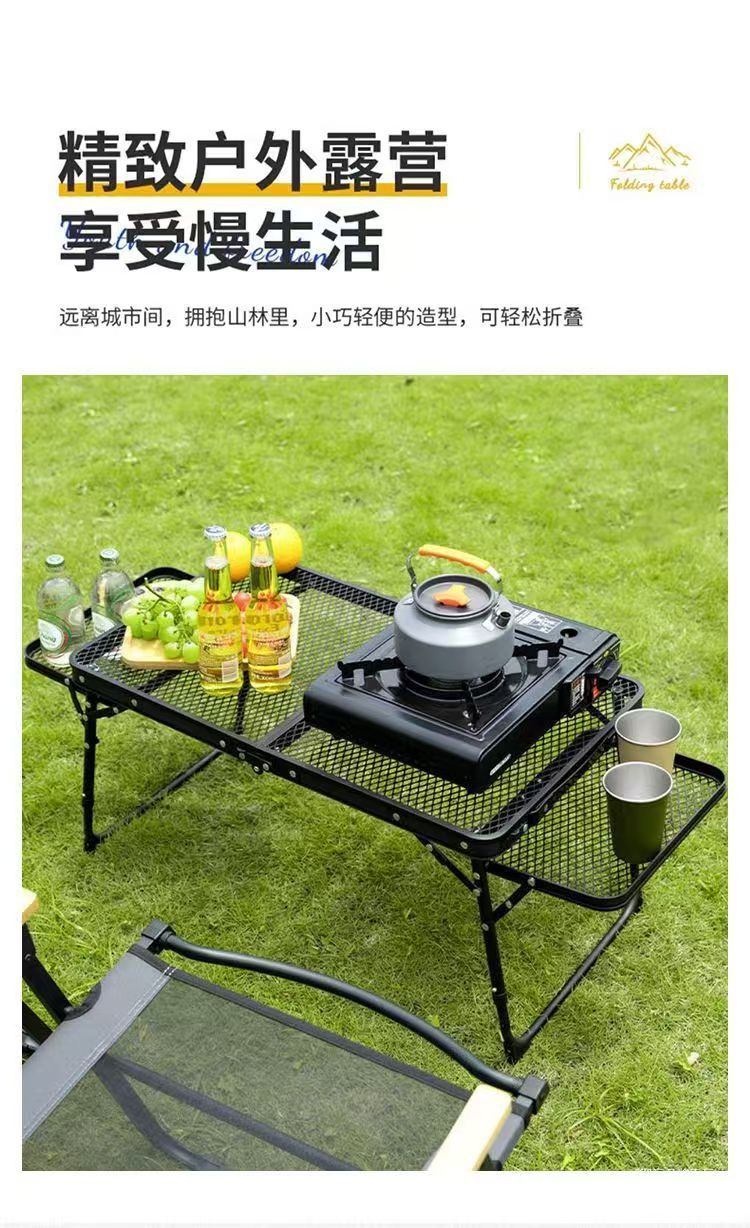 屋外キャンプテーブル鉄網折り畳みテーブル携帯キャンプテーブル昇降棚付きアルミ合金テーブル代発